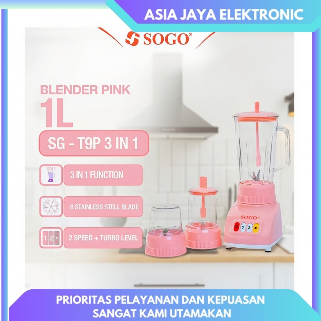 SOGO Blender 1 Liter Plastik Anti Pecah Pisau Stainless Steel Mesin Halus Pink SG-T9P