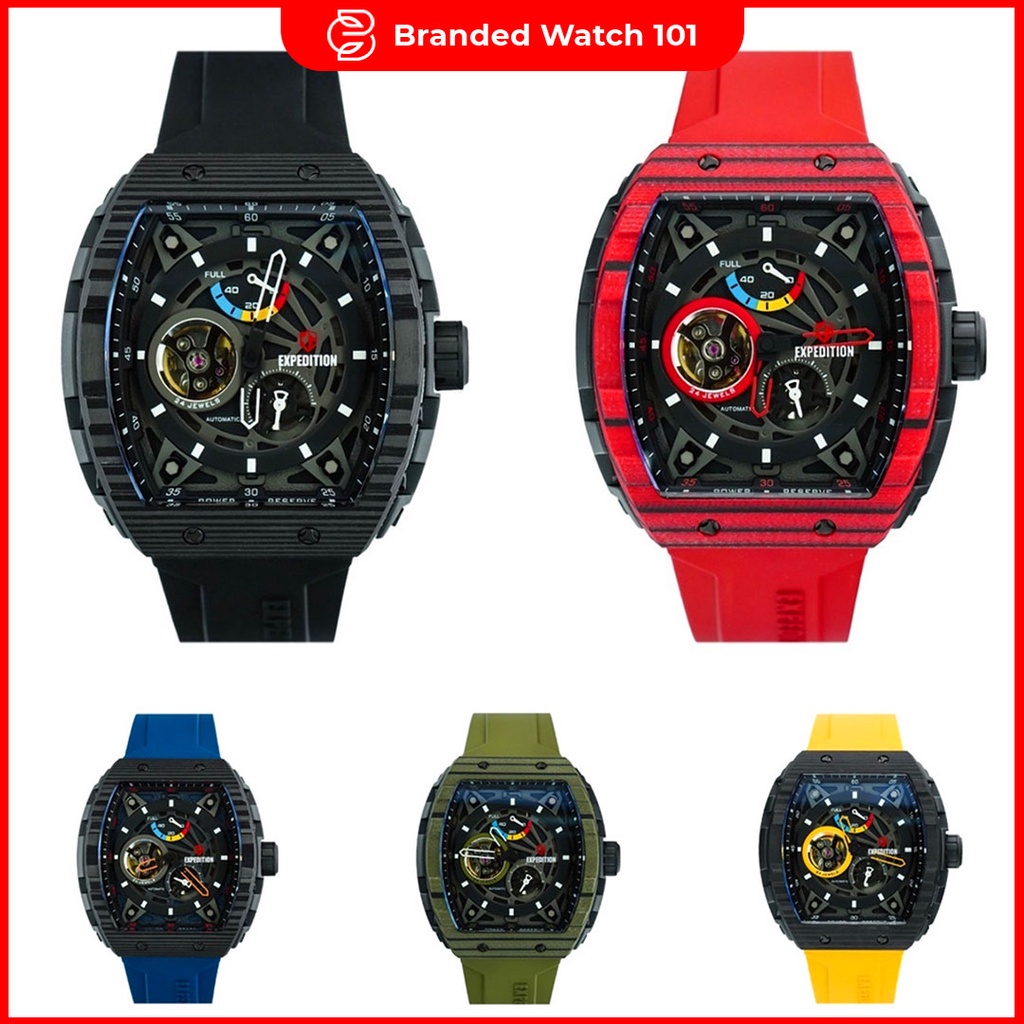 ORIGINAL Jam Tangan Pria Expedition Carbon Titanium limited Automatic E 6782 / E6782 / 6782 Garansi Resmi 1 Tahun, Rubber