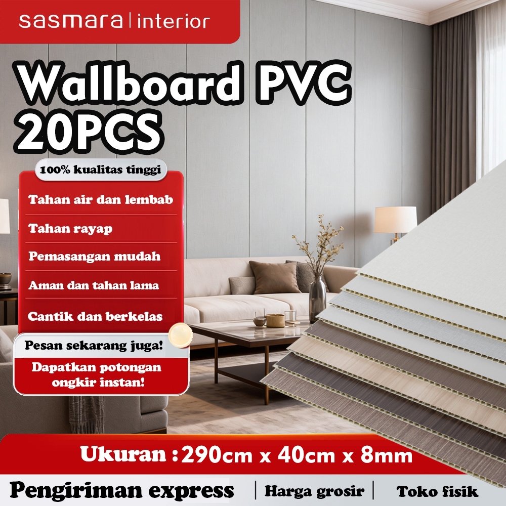 20pcs wallboard panel PVC 2.9m x 0.4m /Panel Dinding Integrasi WPC - Motif Kayu Mewah, PEMASANGAN MUDAH/Cocok untuk Rumah, Kantor, Hotel