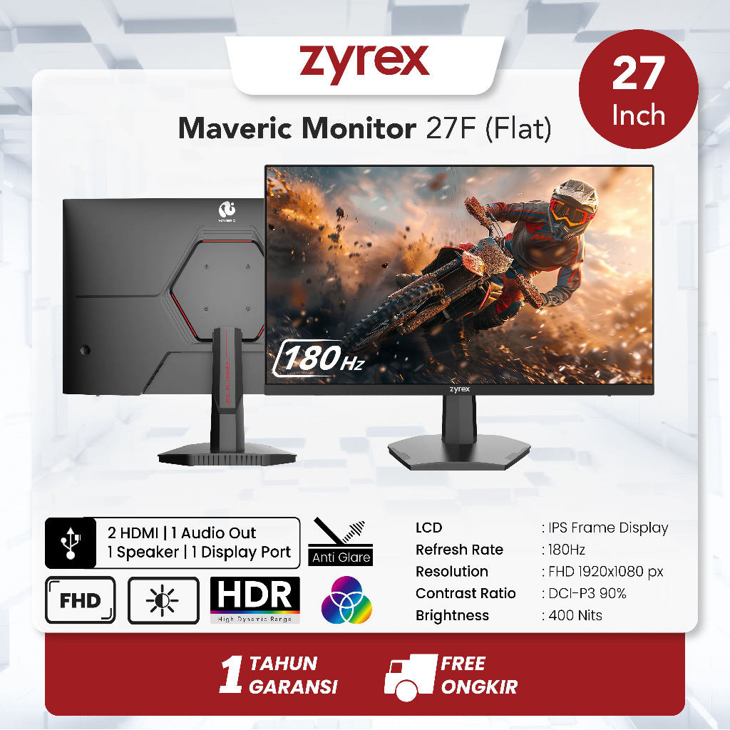 ZYREX MAVERIC MONITOR 27F 27" FHD 180 HZ IPS (Wajib Tambah Packing Kayu)