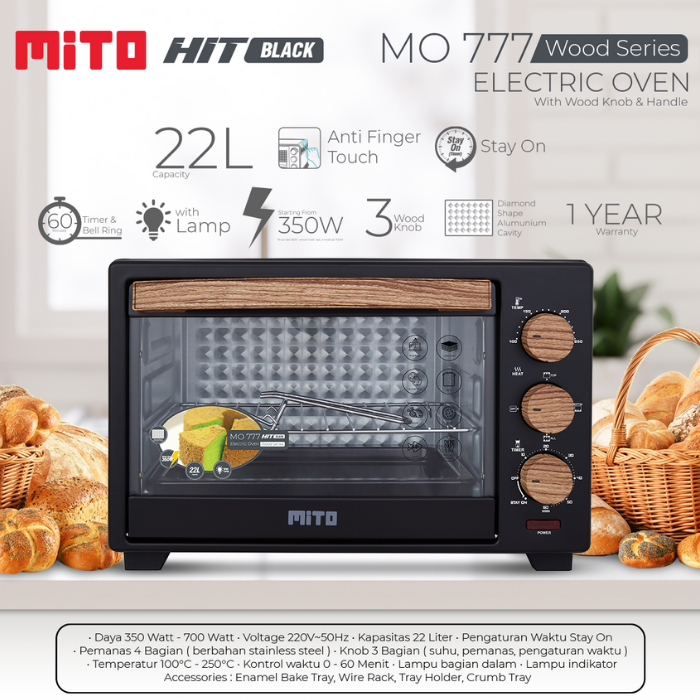 Mito Oven Listrik MO 777 22 Liter Low Watt Electric Oven Wood Handle Open Mitochiba MO777 Kenop Kayu