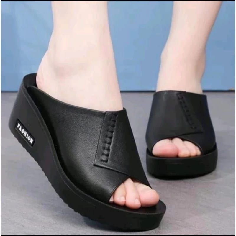 Sandal Wedges Wanita Rempel Slip On – Sandal Cewek Kekinian Korea Style