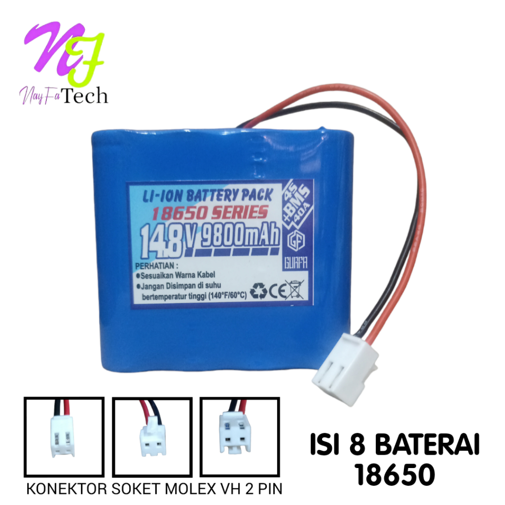 Baterai Speaker Dan Baterai Alat Elektronik Lainnya 8X Li-ion 18650 9800mAh 14,8V 2 PIN
