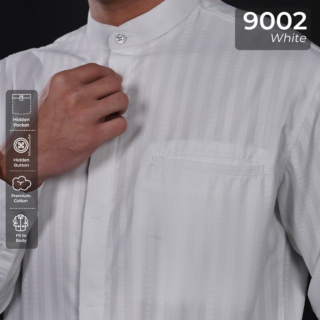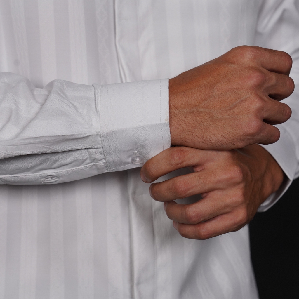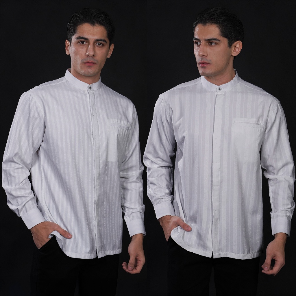 Baju Koko Pria Lengan Panjang Premium Vertical White Koko Elegant Musa Lengan Panjang