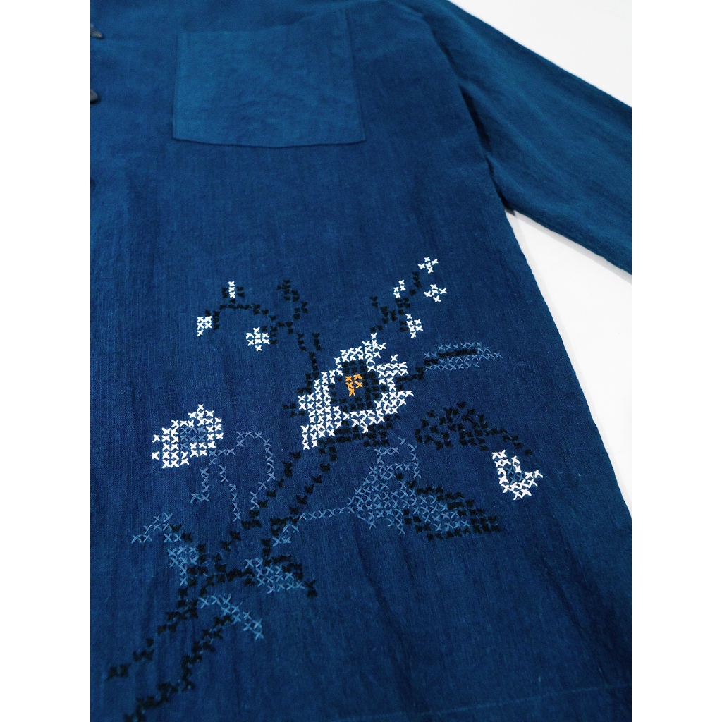 Nuppu x Tinctori - Cross-Stitch Long Sleeve Shirts Indigo