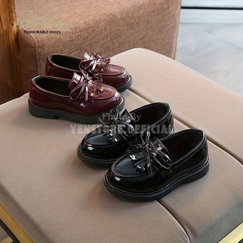 Sepatu Docmart Anak Sepatu Loafers Anak Variasi Pita Lucu Korean Style Terbaru