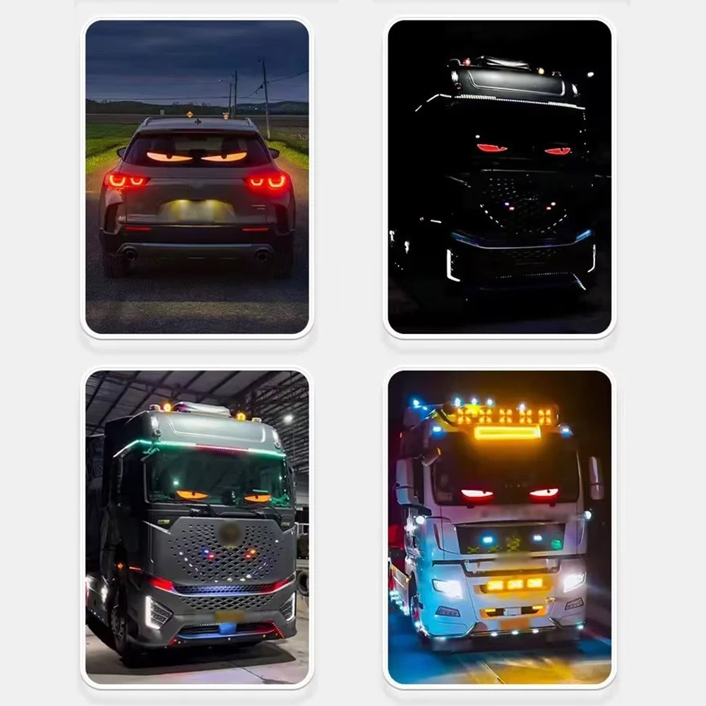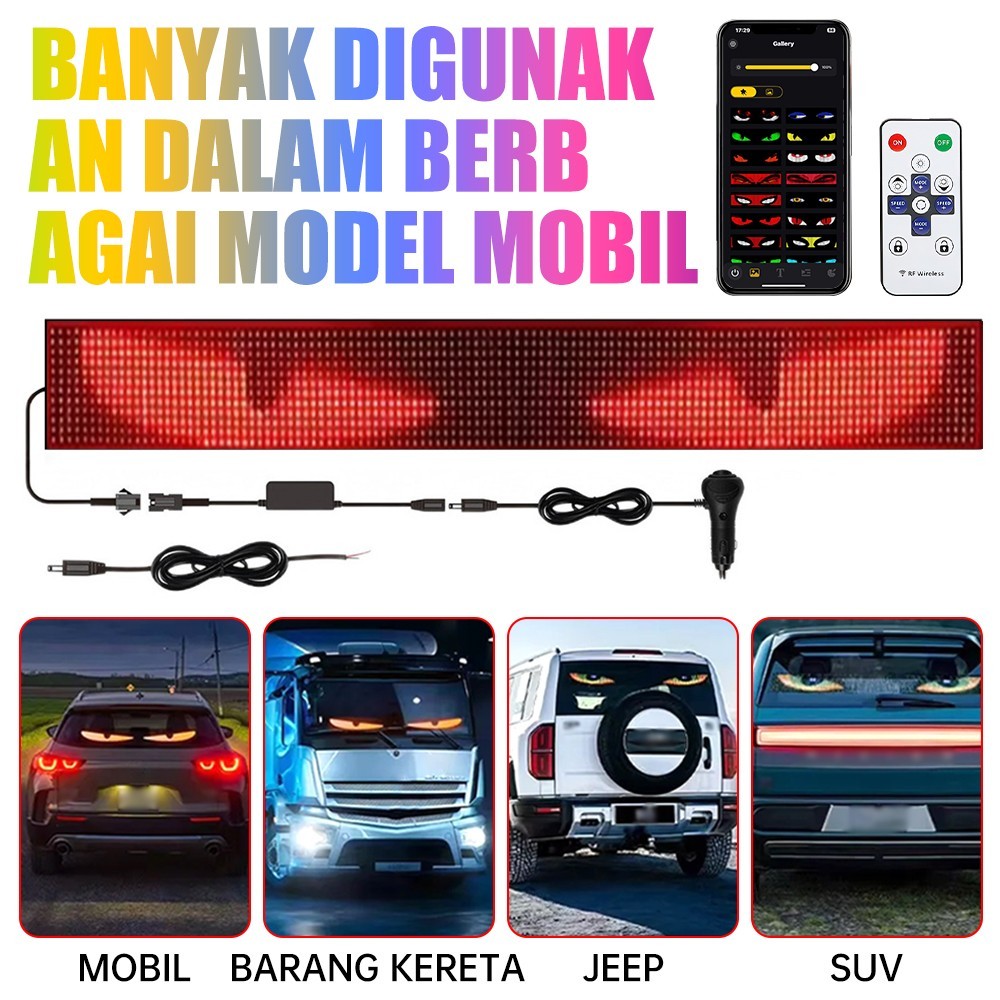 Moketa Lampu LED Animasi Mobil/Truk Mata Iblis Kontrol Remote/Aplikasi 12–24V Lampu Hias Truk Lampu Variasi Mobil Running Text Mobil Lampu LED Kaca Depan Mobil