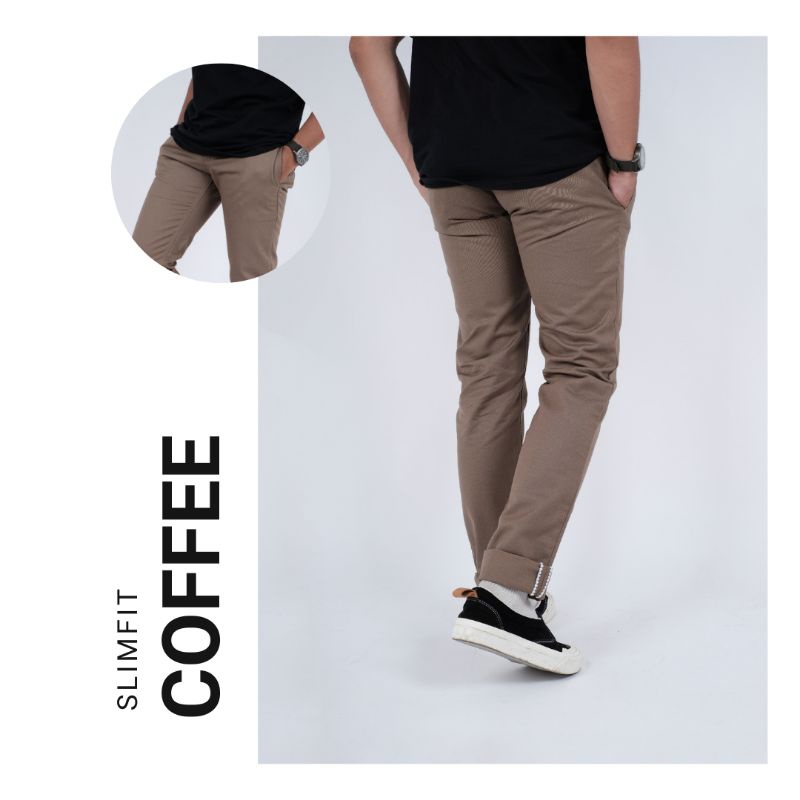 Celana Chino Panjang Pria Slimfit Coklat Coffee Straightface Menswear Shelledge