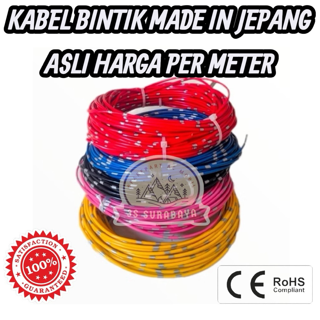 KABEL BINTIK MOBIL / MOTOR / LISTRIK / TRUCK AVSS UKURAN 1.25 MM HARGA PER METER MADE IN JEPANG TEMBAGA MURNI SERABUT SERTIFIKASI ROHS (Baru/New)