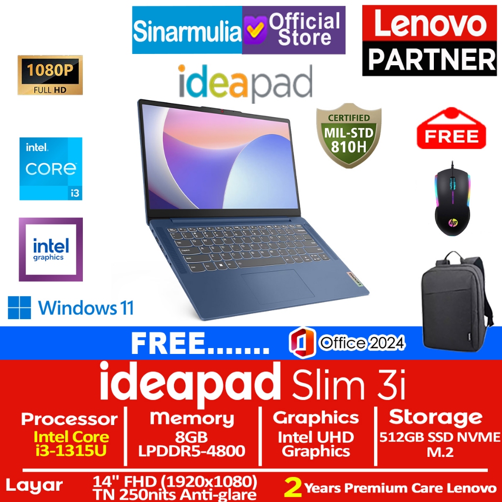 Lenovo Ideapad Slim 3i i3 1315U 512GB SSD 8GB Win11+OHS