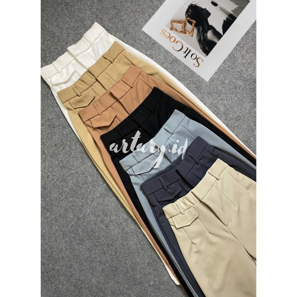 Celana Oro Pants Knit Celana Highwaist Wanita Rib Karet Celana Panjang Korean Style