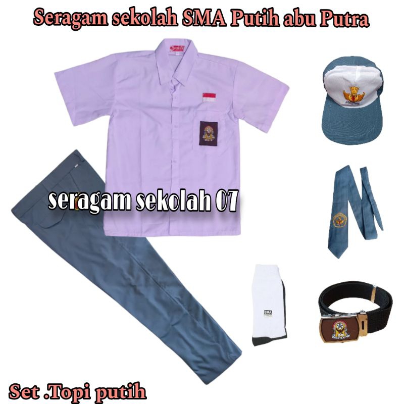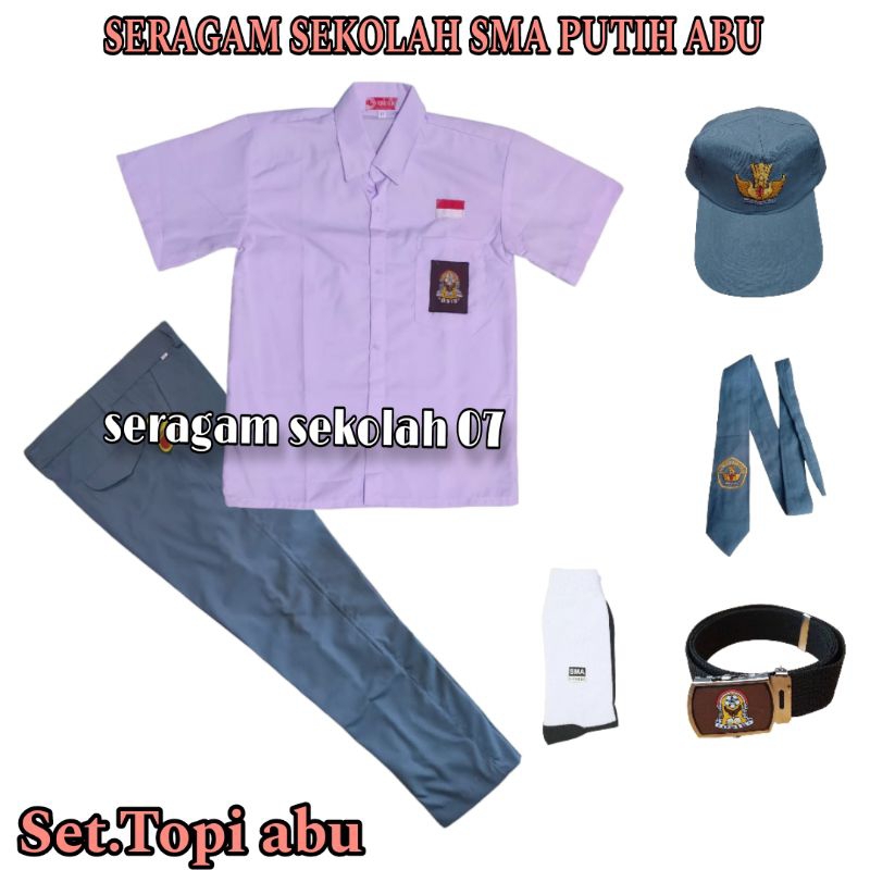 Seragam Sekolah SMA Putih Abu Abu Anak Laki Laki Baju Lengan Pendek Kelas SMA