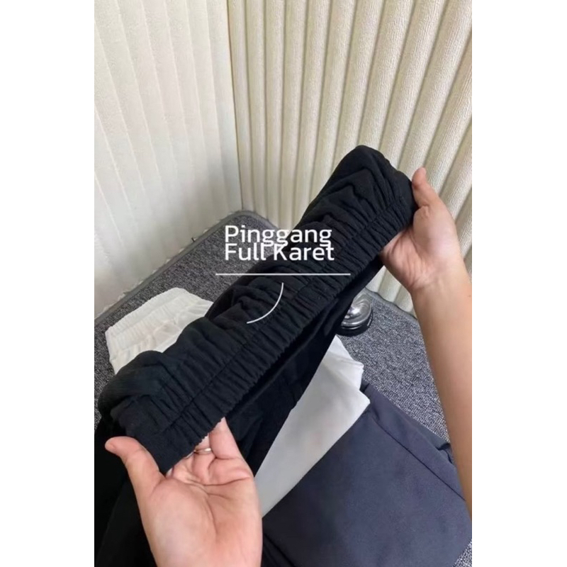 Oro Pants Knit- Celana Wanita Bahan | Loose Pants Trouser Highwaist