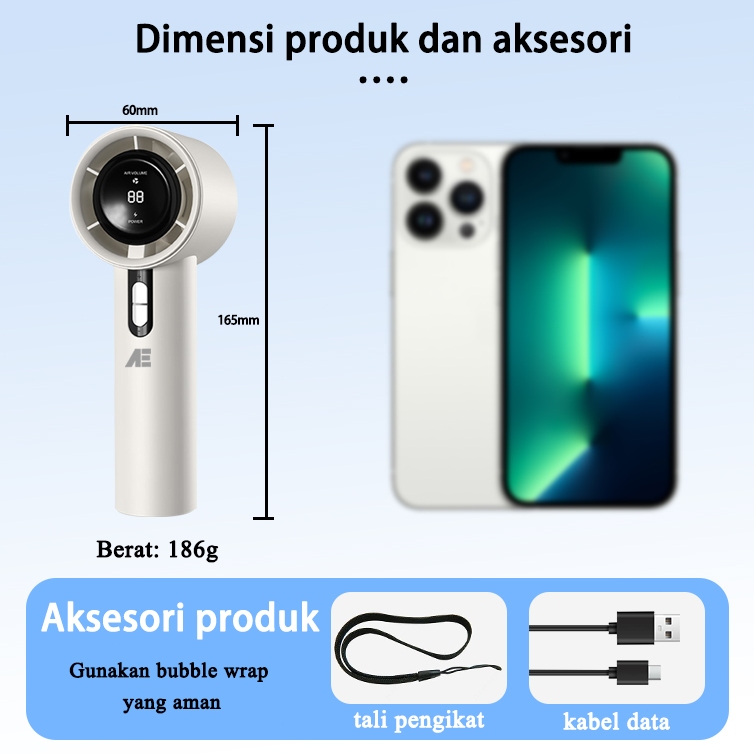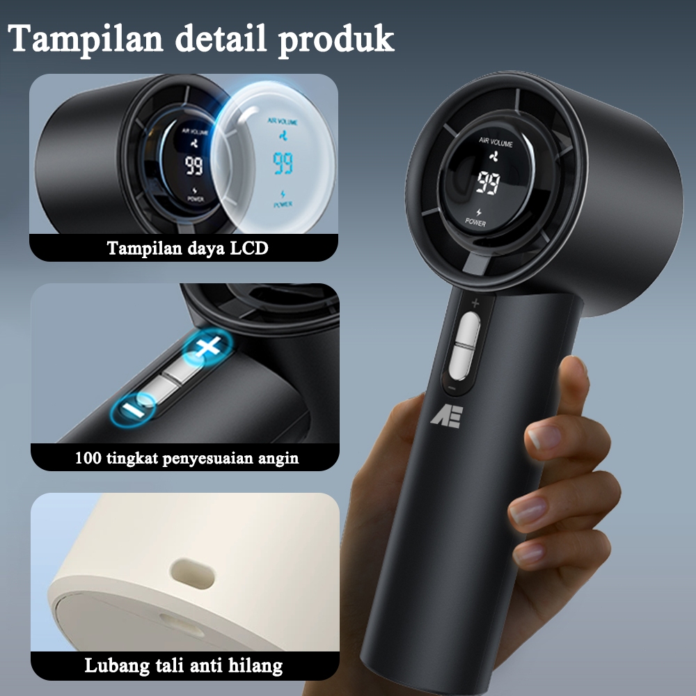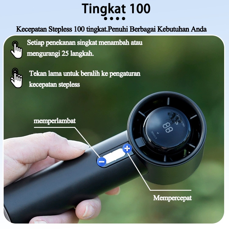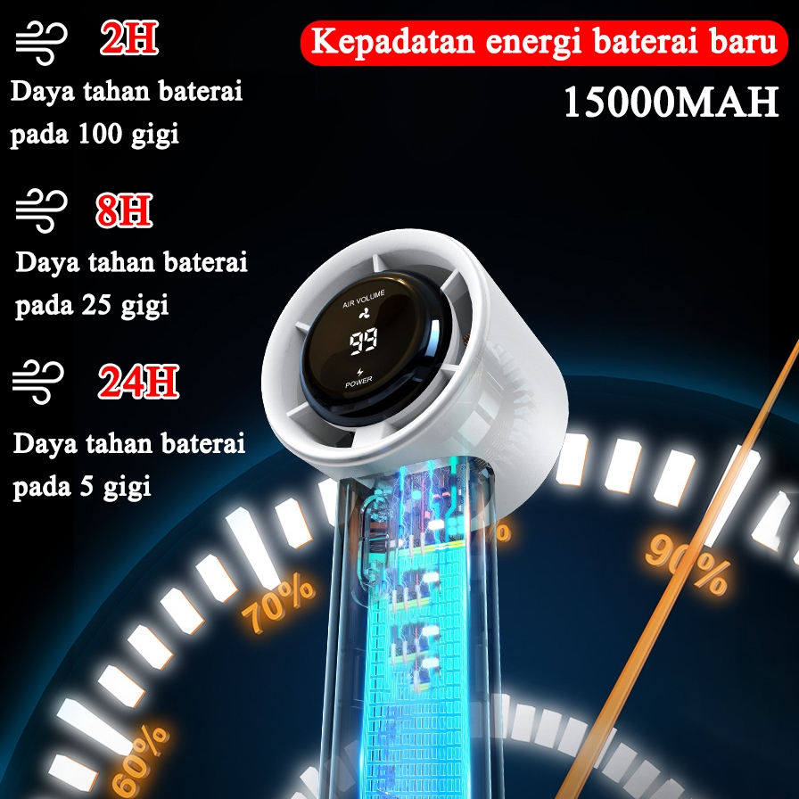 Kipas Angin Portable15000mah 100 Gear Strong Wind Kipas Angin Kecil Turbo Adjustable Wind Speed Digital Display