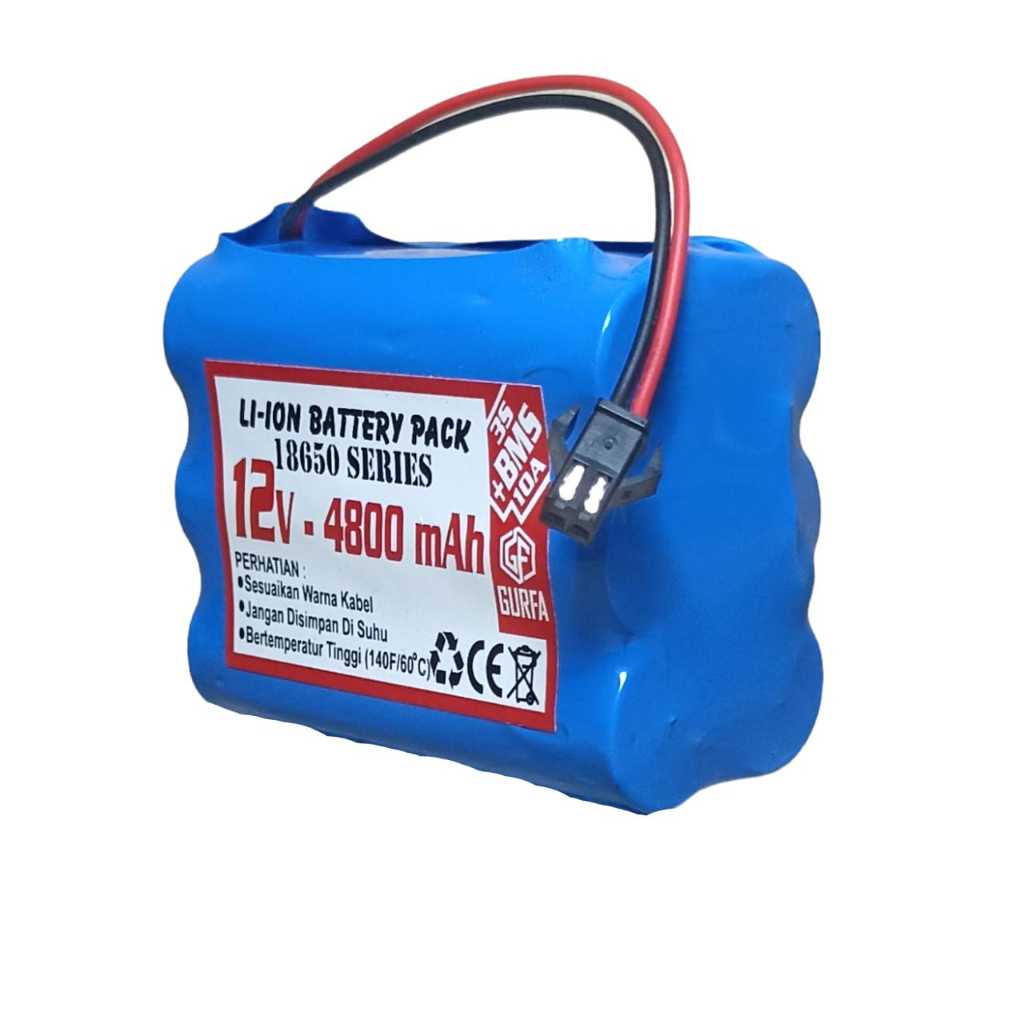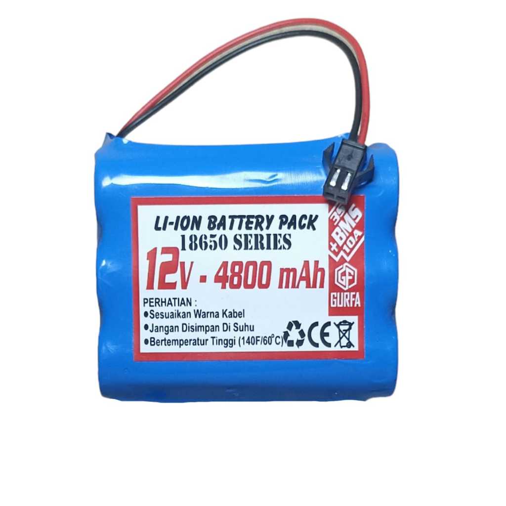 Baterai 6X Li-ion 18650-3S BMS 10A 4800mAh 12V Soket Hitam 2 Pin