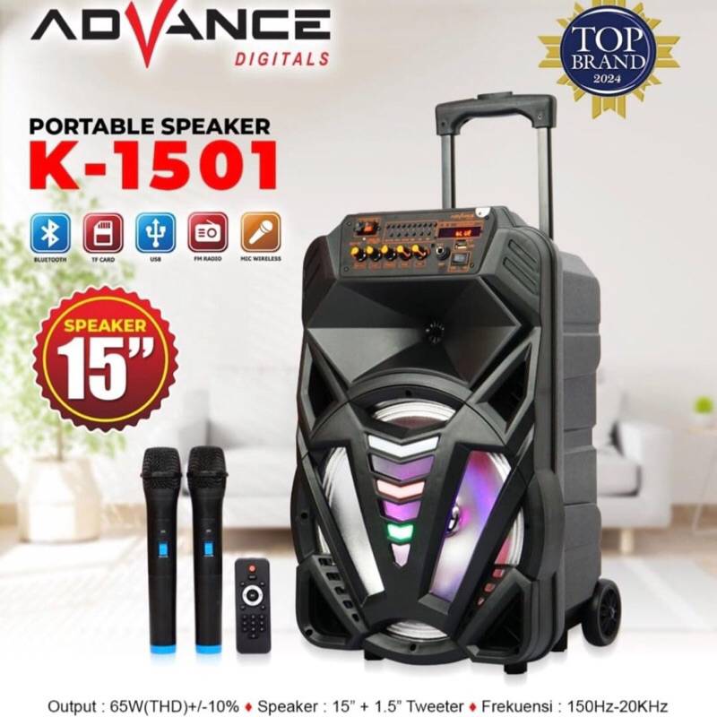 speaker aktif 15 inch advance audio (K-1501)/portable speaker advance 2 mic K-1501 portable speaker