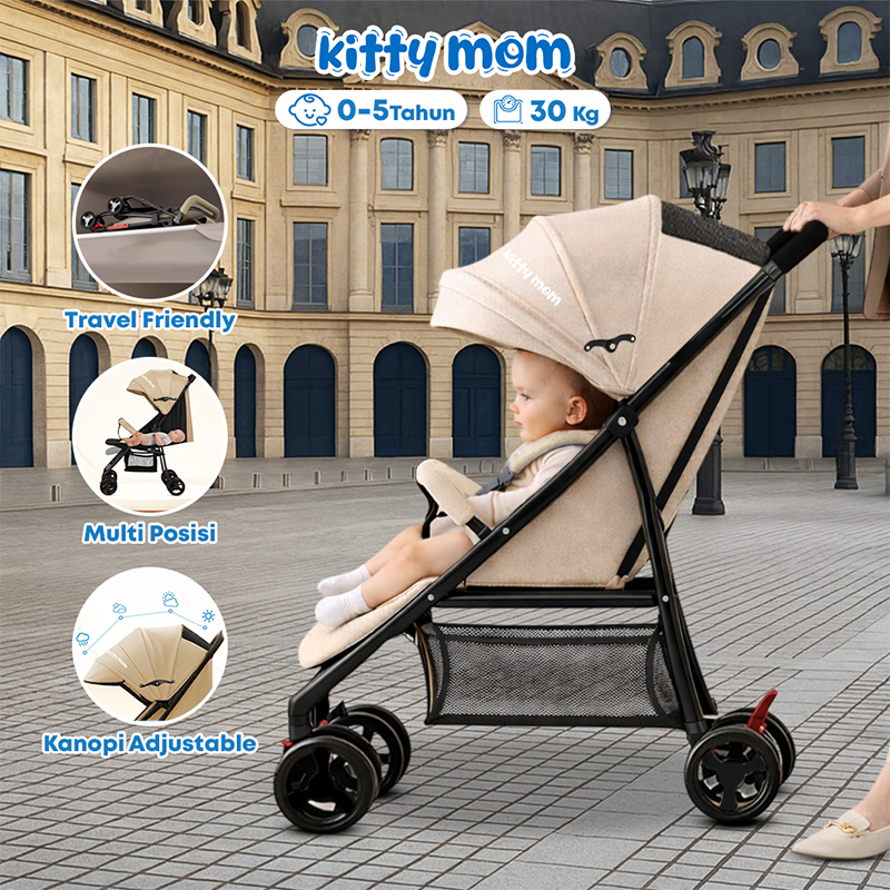 Kitty Mom Stroller Bayi Lipat Travelling Newborn Cabin Size Dorong Travel Friendly Mudah Dilipat Multi Posisi 0-5 Tahun