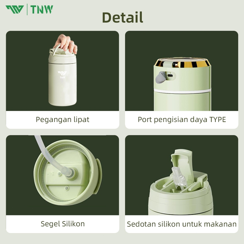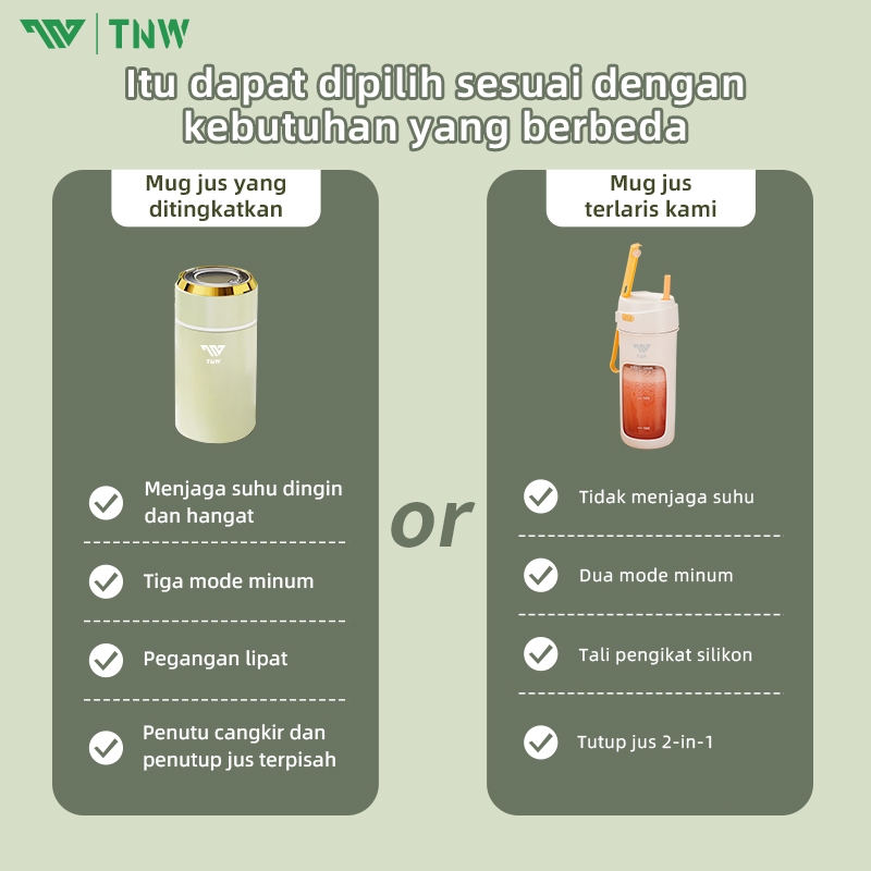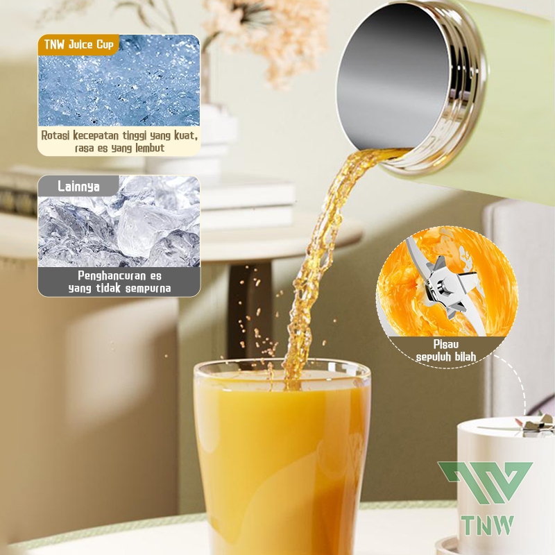 TNW KJ10 2 In 1 Juice Blender Portable Botol Stainless Steel Vacuum Insulated Thermos Tumbler Ice Crusher Mixer Mini Juicer