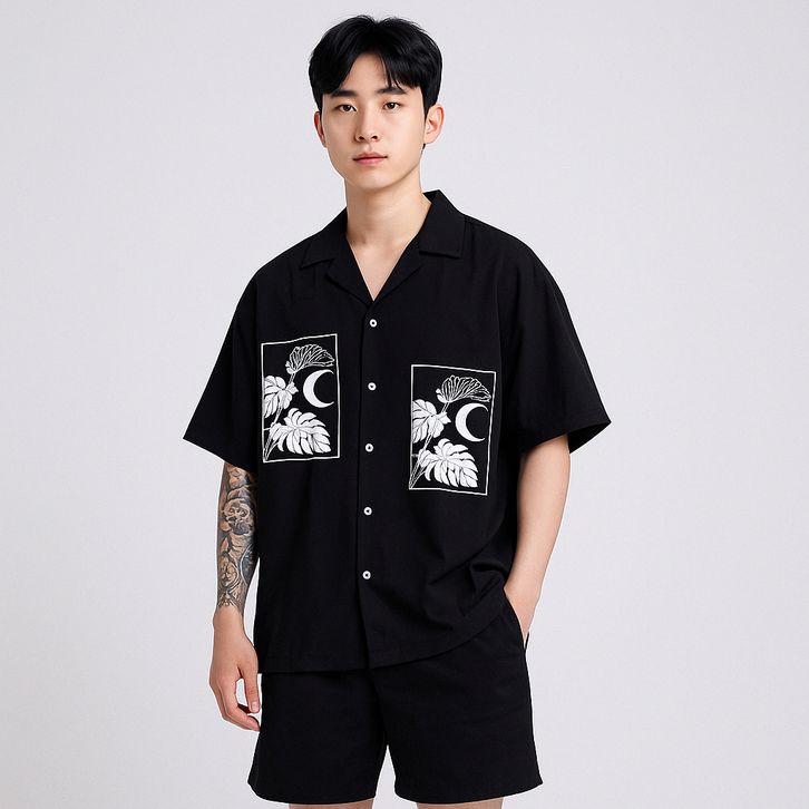 Kemeja Pria Kemeja Pria Vintage Tribal Hitam – Oversize Motif Etnik Retro Klasik Vintage Lengan Pendek Kemeja Pria Wani