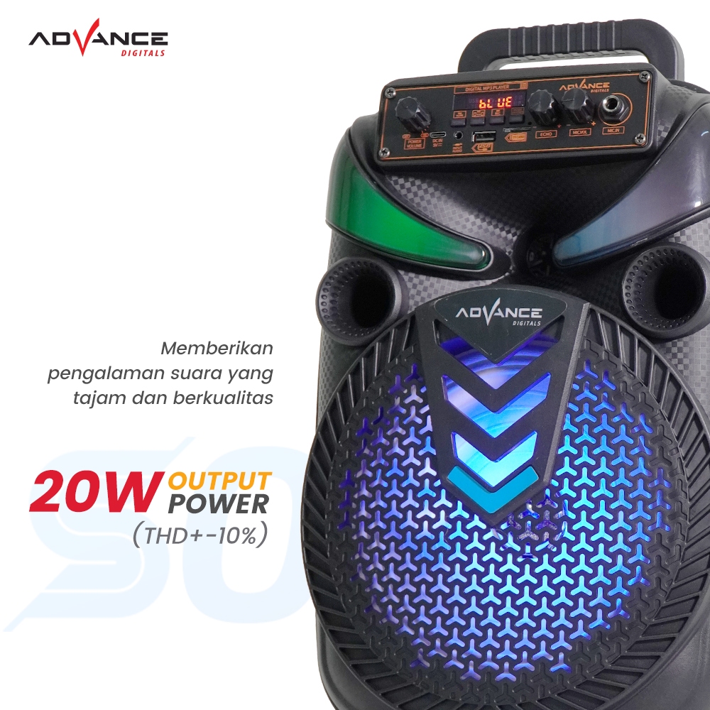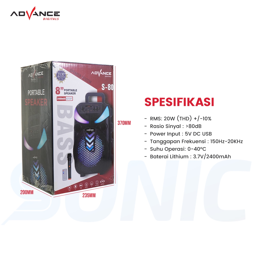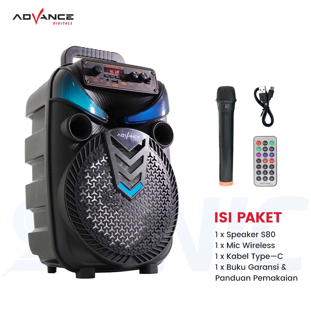 Advance S80 Speaker Bluetooth Karaoke 8 inch Free Mic Super Bass Speaker Aktif With Rgb Light