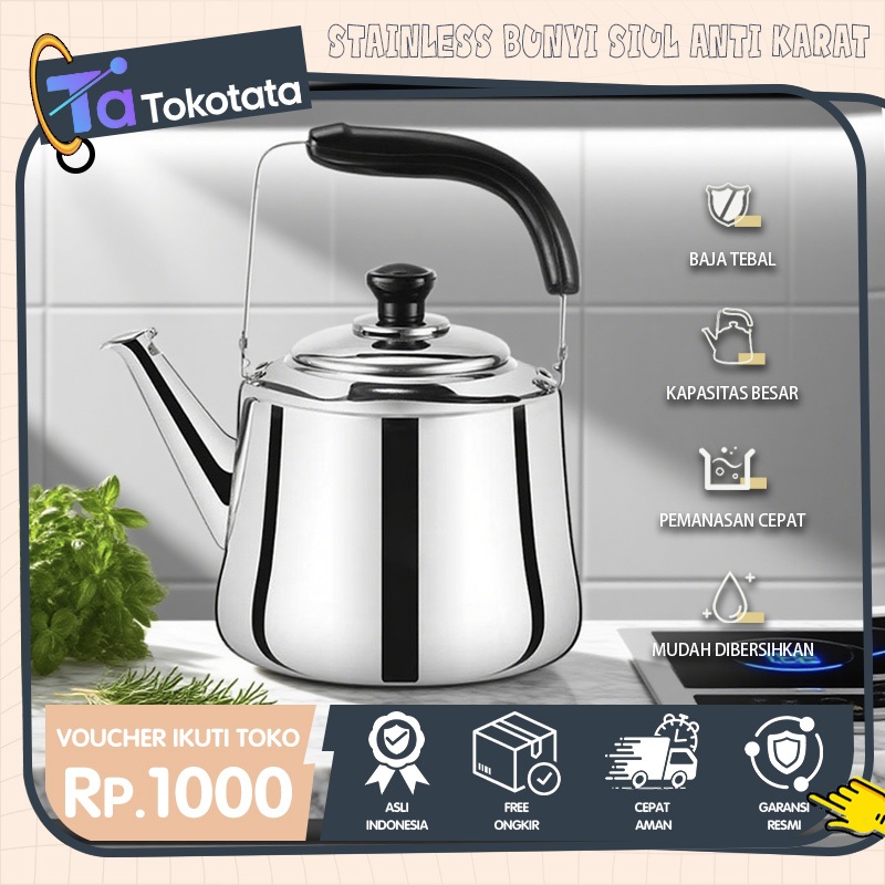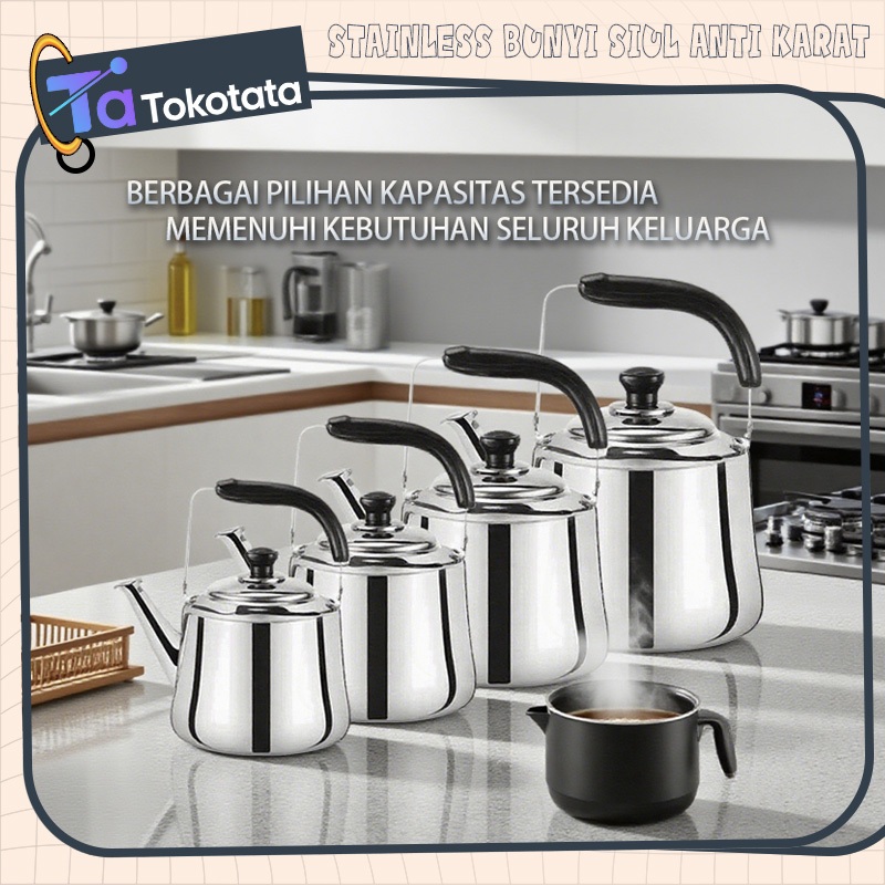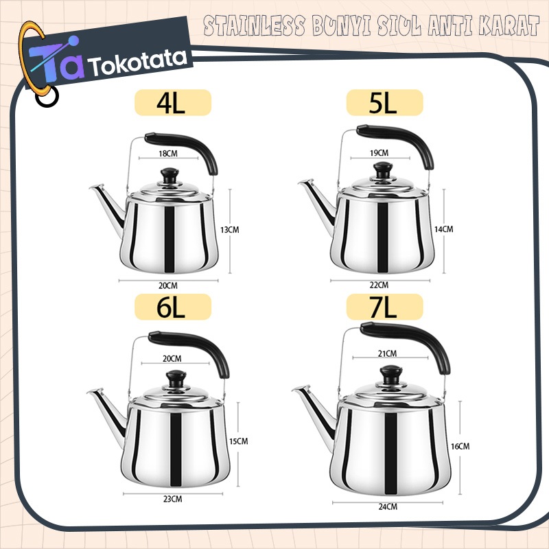Tokotata Ceret Teko Stainless Steel Bunyi Siul Anti Karat Ceret Bunyi Untuk Masak Air 4L 5L 6L 7L
