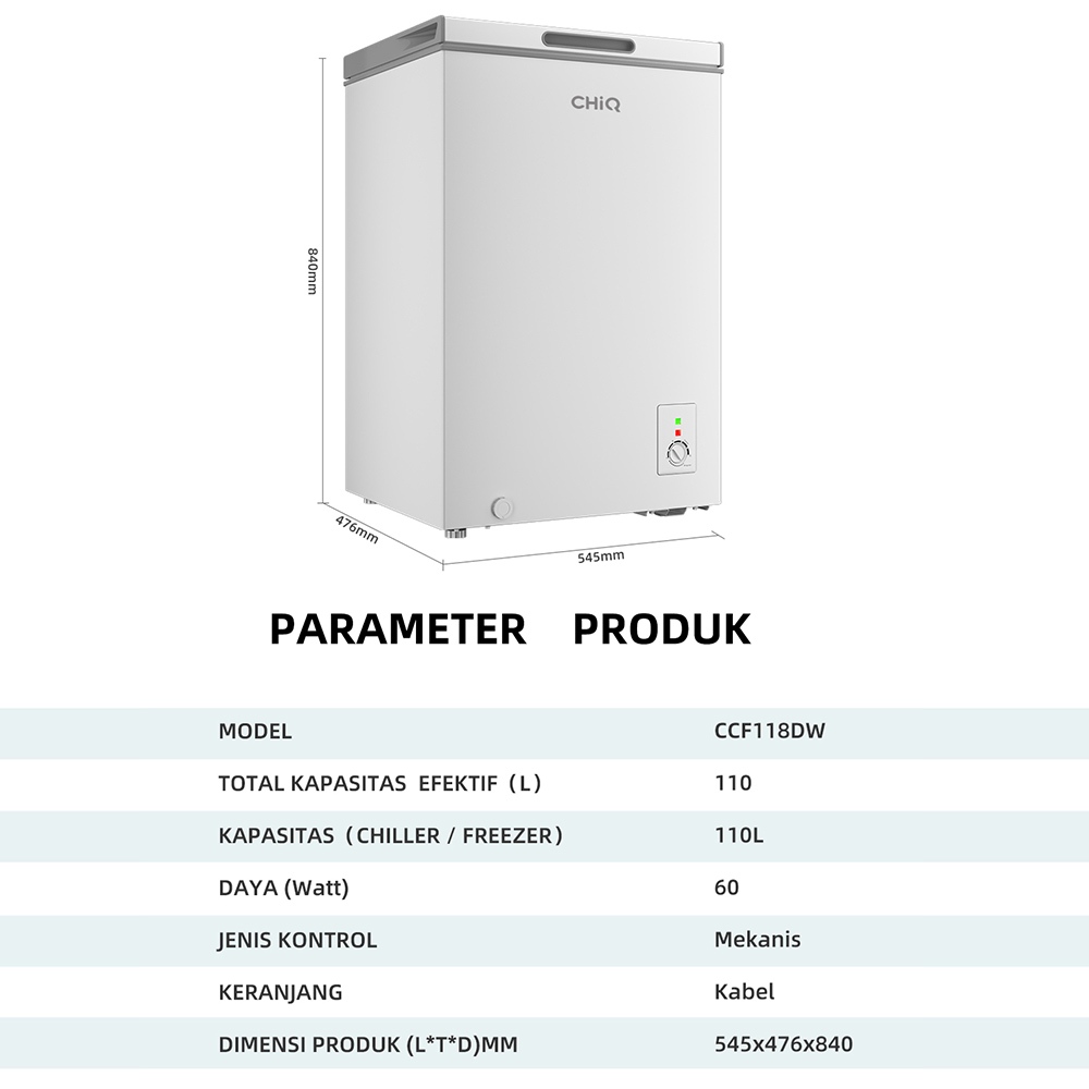 CHIQ CHEST FREEZER CCF 118DW 110 LITER LEMARI ES PENDINGIN CHESTFREEZER DUAL FUNGSI CEPAT BEKU