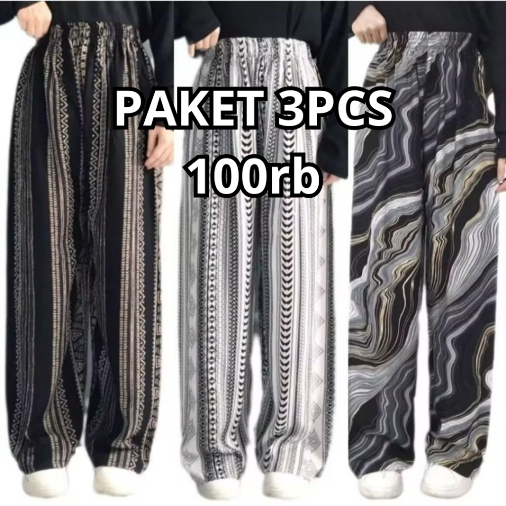 Paket Murah Isi 3 Pcs Celana Kulot Hommy Part 2 KALLYOUTFIT Kulot Wanita Rayon Viscose Premium Simple Elegant Mewah Motif Rayon Terlaris