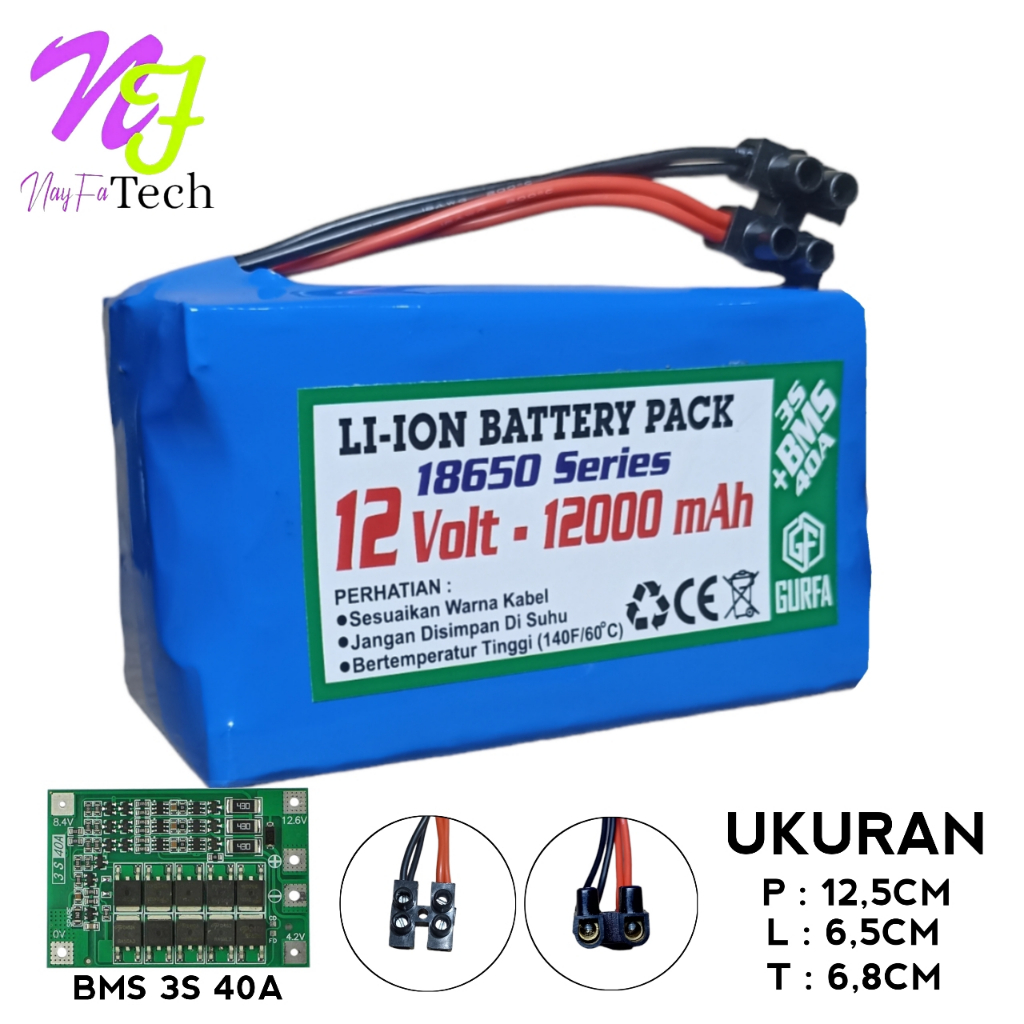 Baterai Speaker / Baterai PACK Dan Batrai Alat Elektronik Lainnya 18X 18650 12000mAh 12V BMS 3S 40A SOKET TERMINAL BLOK