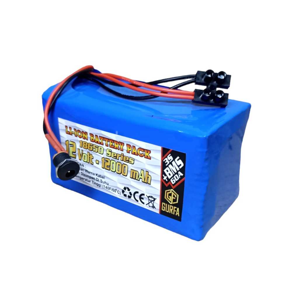Baterai Sepeda / Baterai Speaker Dan Perangkat Elektronik Lainnya 18X 18650 12000mAh 12V BMS 3S 60A SOKET TERMINAL BLOK