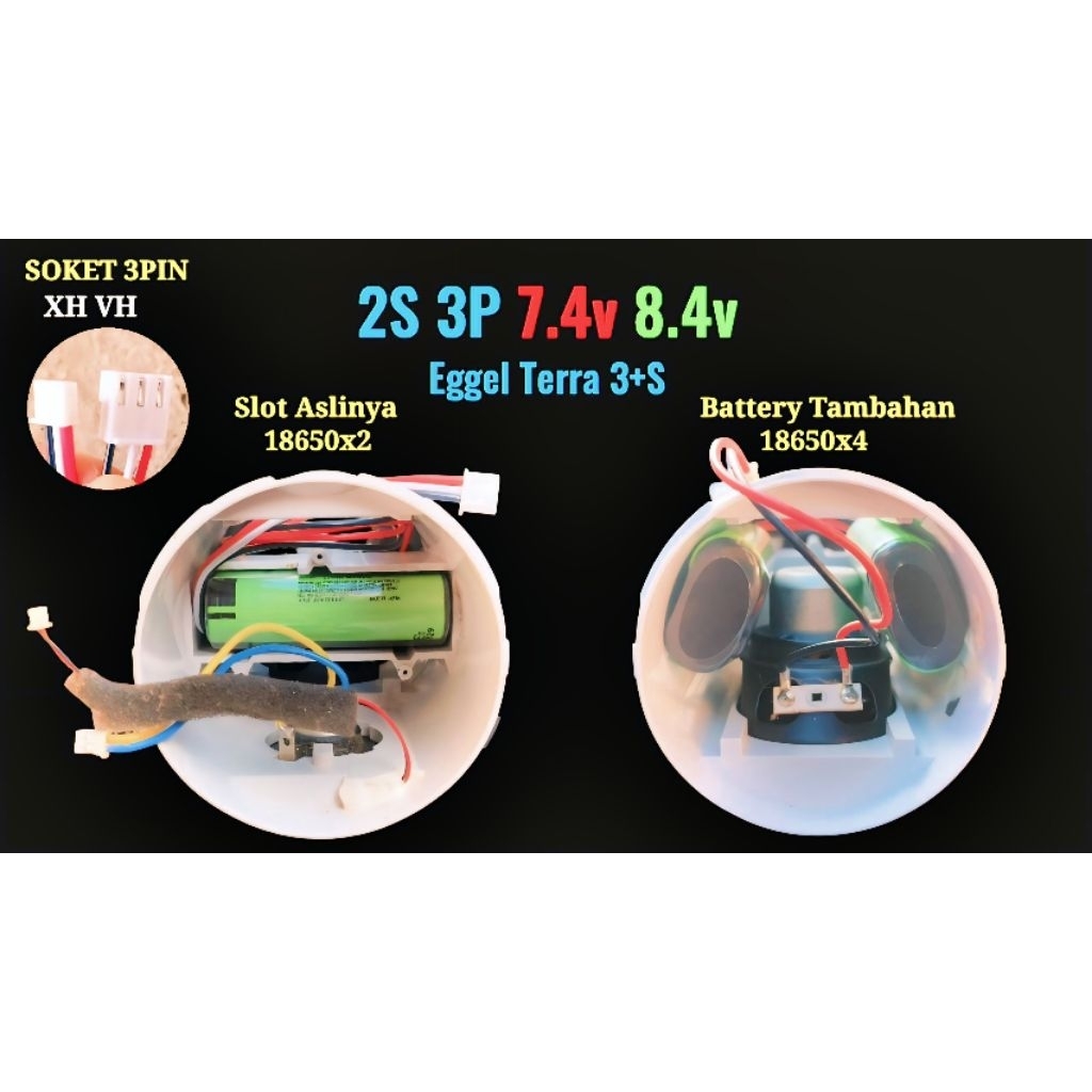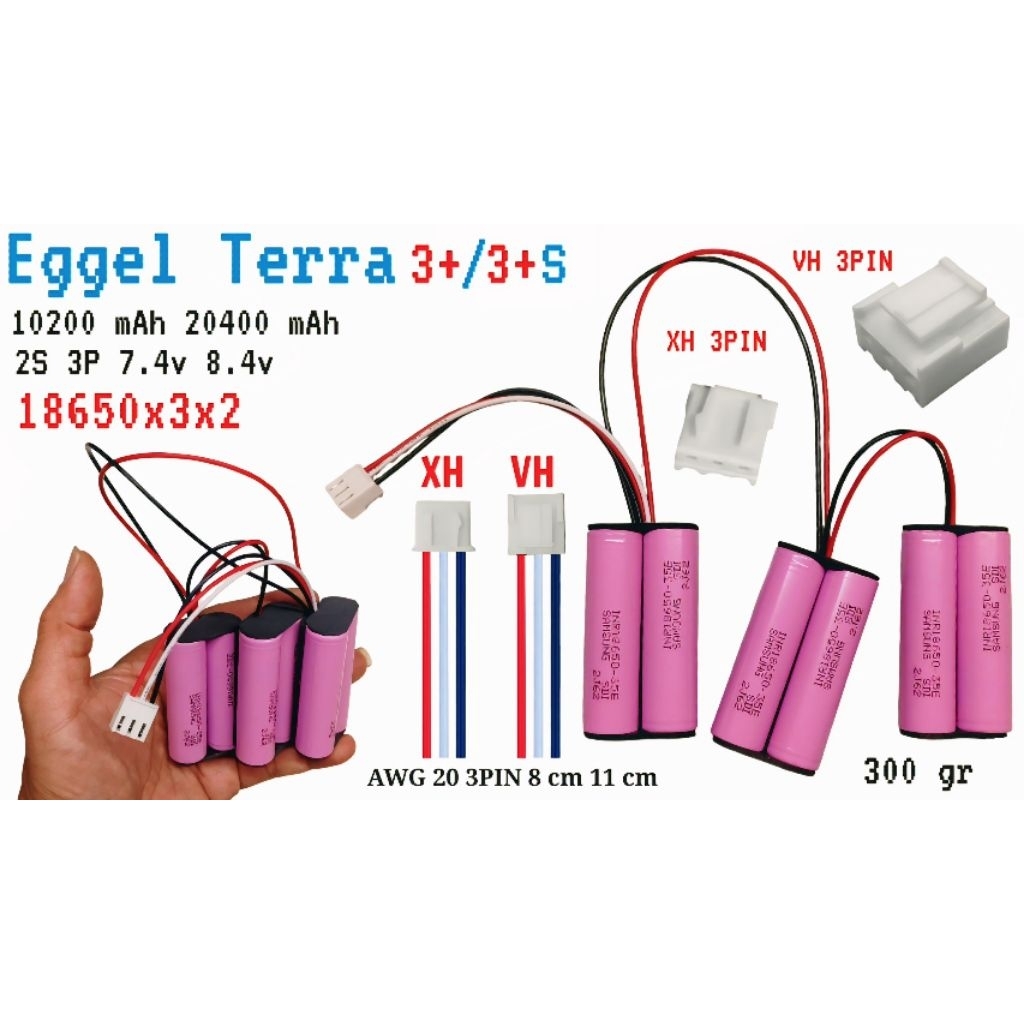 Battery EGGEL Terra 3+/3+S 7.4V 8.4V 20400 mAh UPGRADE KAPASITAS 18650x6 XH VH 3PIN