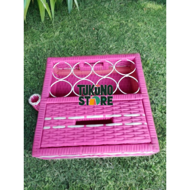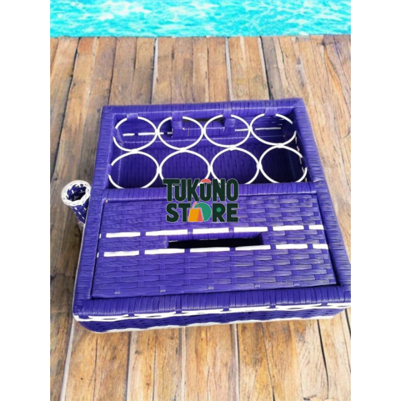 FLASH SALE Tempat Aqua + Tisu 2in1 Serbaguna Kotak Wadah Tempat Air Mineral dan Tissue Rotan Sintetis