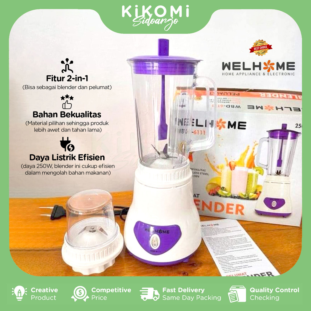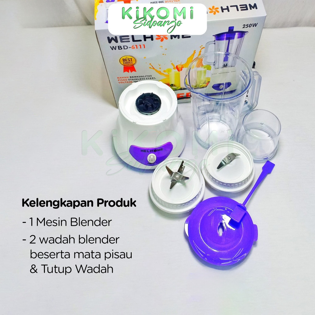 WELHOME WBD-611 BLENDER PELUMAT ELEKTRIK 2 IN 1 250W Mata Pisau Stainless Steel Multifungsi - KM