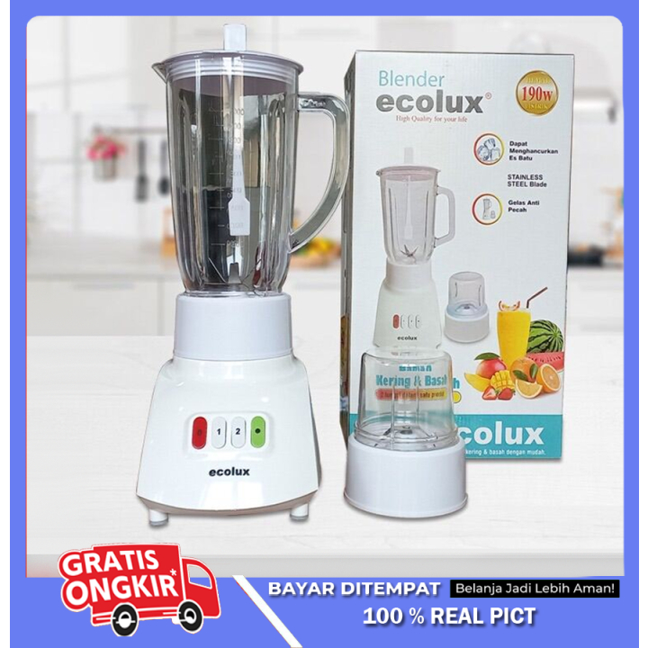 Blender Ecolux 2in1 Bahan Plastik Low Watt Anti Pecah