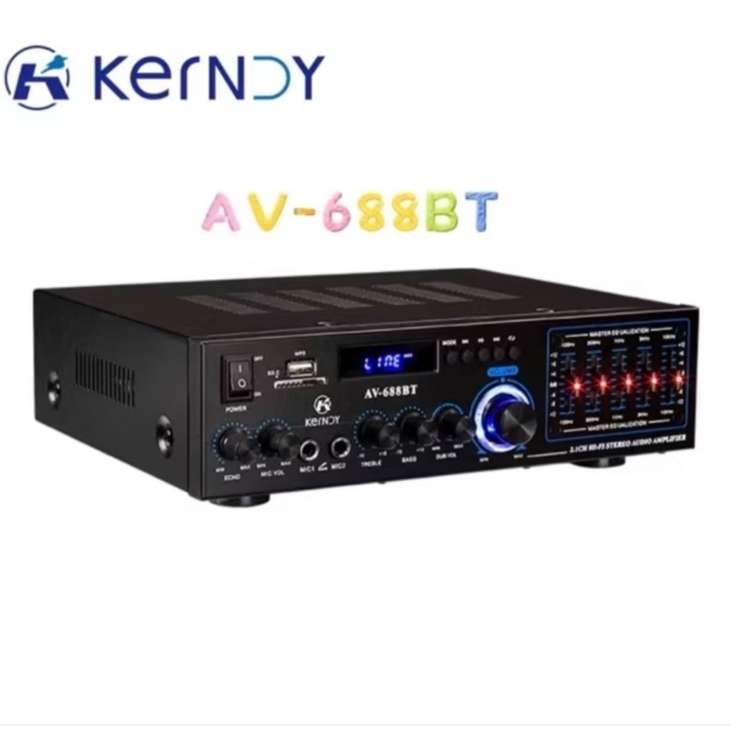 AV 688BT Amplifier Kerndy Bluetooth 5.3 Audio EQ Channel 2.1 Full Bass SUBWOOFER Amplifier Karaoke Home Theater AV-688BT