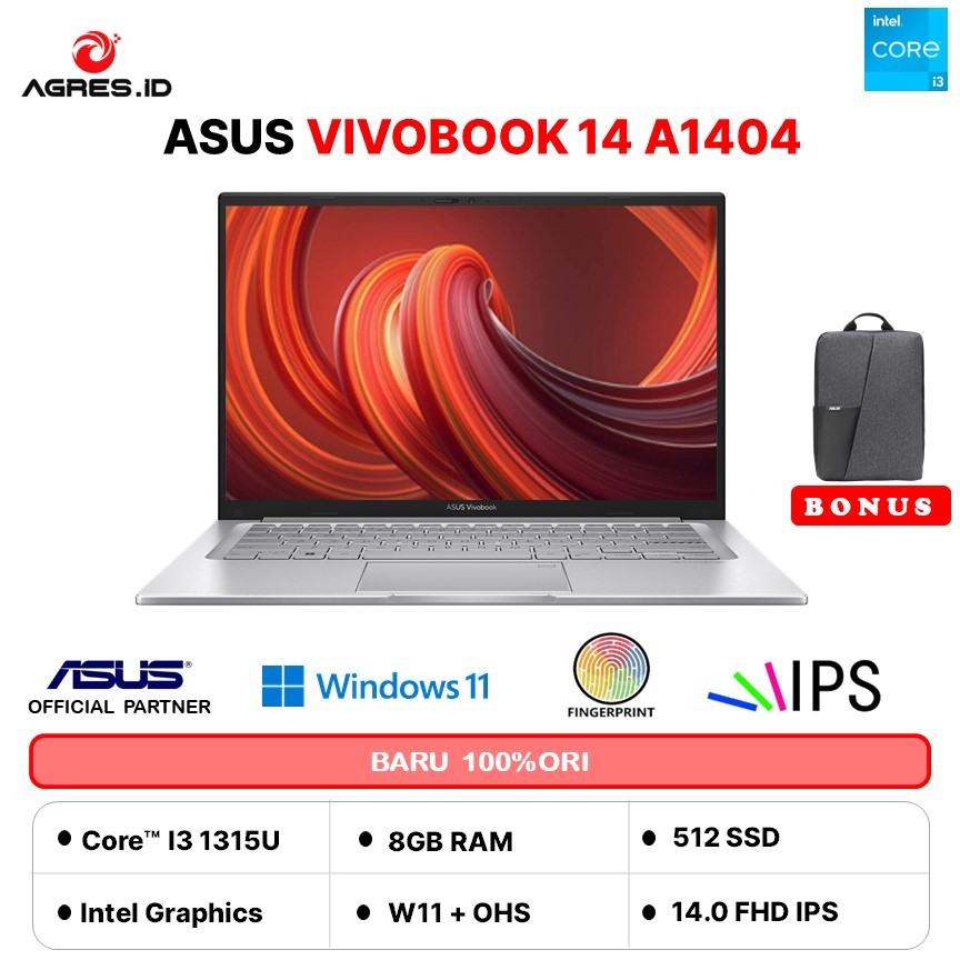 ASUS VIVOBOOK 14 A1404VA I3 1315 16GB 512GB W11+OHS 14.0FHD IPS SLV -FHD3823M