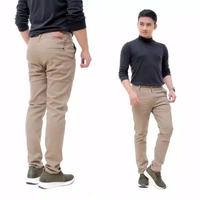 Celana Chino Panjang Pria Slimfit Kerjaharian Santai Casual Formal Hitam Abu Cream Mocca Size 27-38