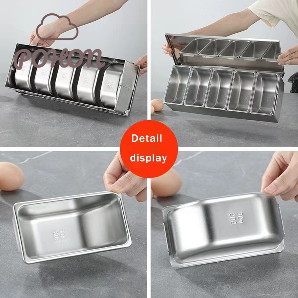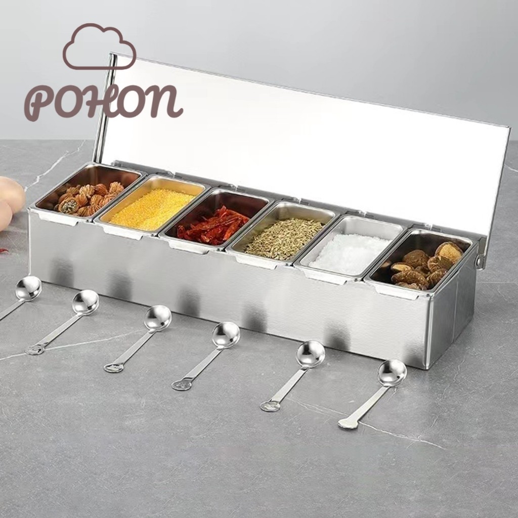 POHON 6 in 1 Kotak Bumbu Dapur Stainless 6 Kotak Kotak Bumbu Serbaguna Wadah Penyimpanan Bumbu