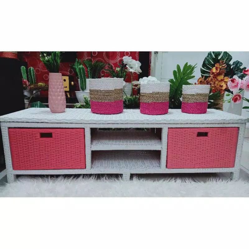 FLASH SALE Lemari Laci 3 DVD JUMBO Meja TV Rotan 2 Slot + Tempat VCD Anyaman Sintetis