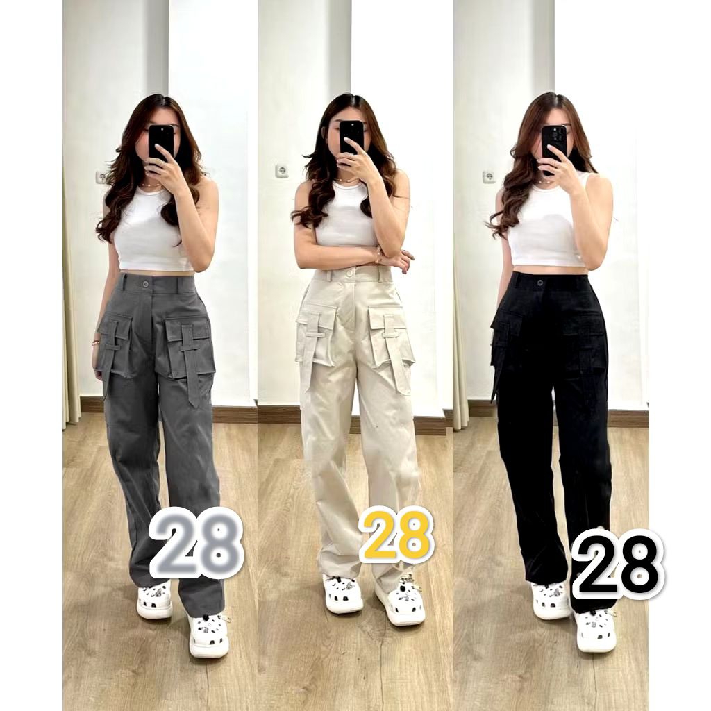 Yura Cargo Wanita Cargo Pant Pocket Celana Kargo Wanita Casual