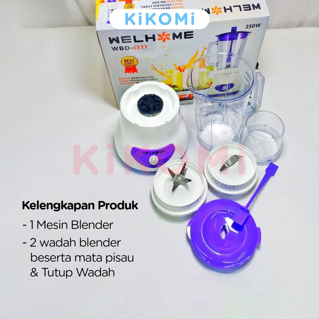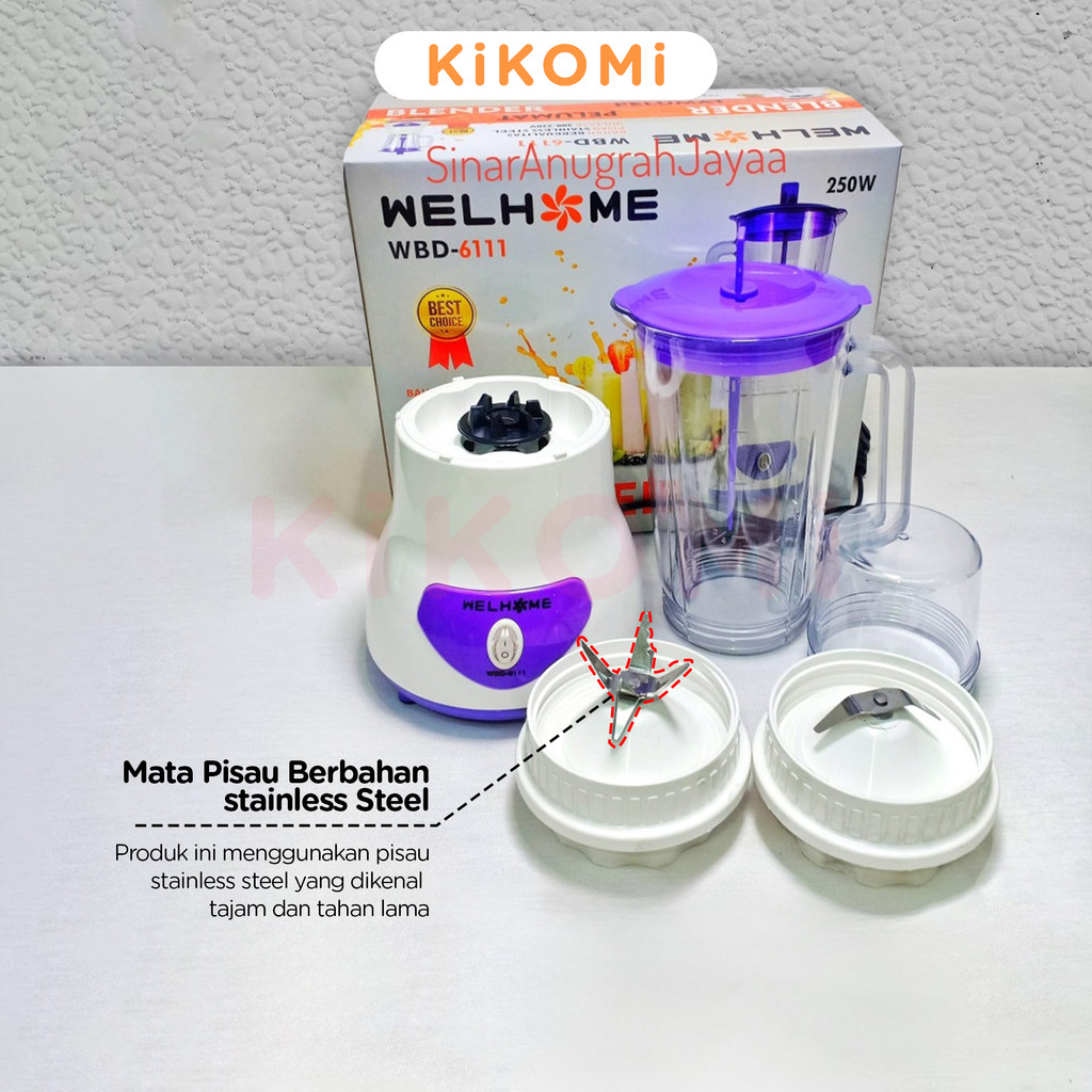WELHOME WBD-611 BLENDER PELUMAT ELEKTRIK 2 IN 1 250W Mata Pisau Stainless Steel Multifungsi - KK