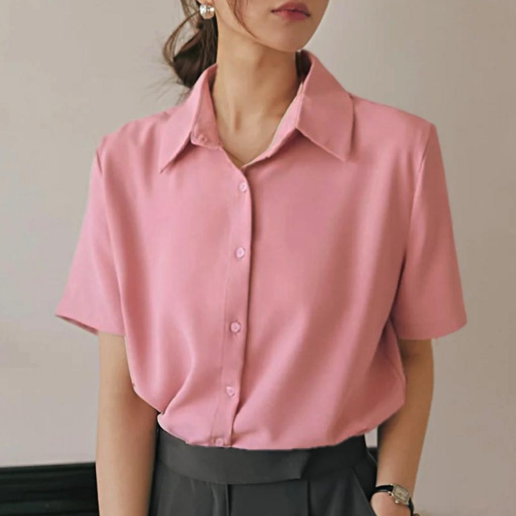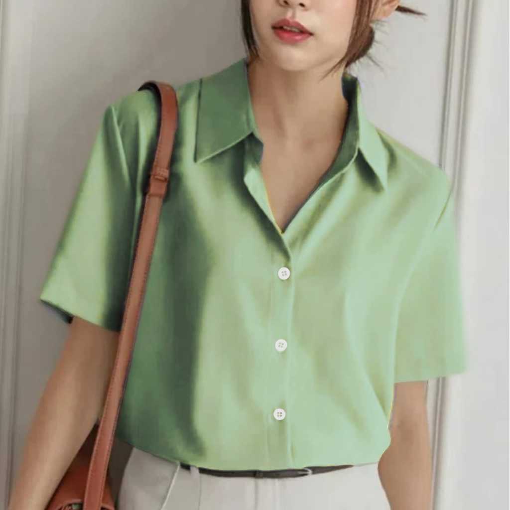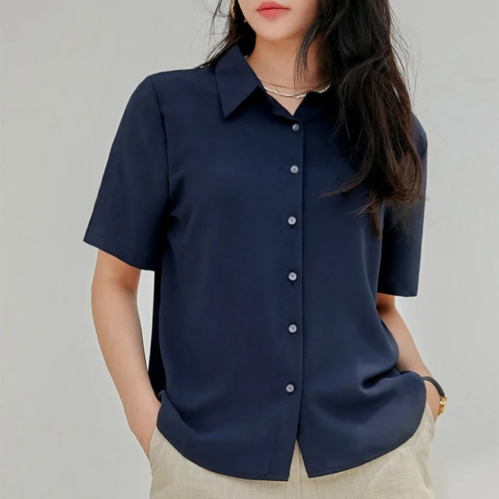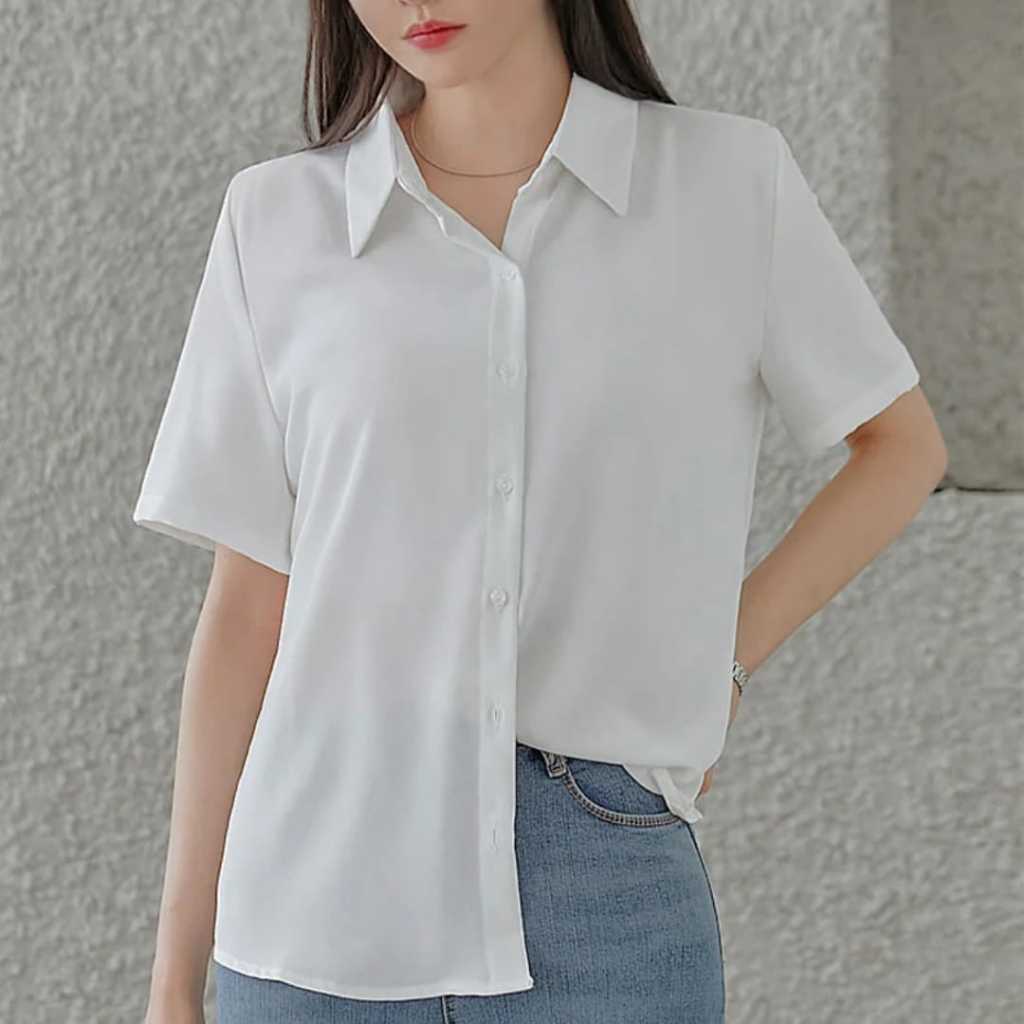 Kemeja Wanita Pendek Putih Hitam Atasan Kerja Kasual
