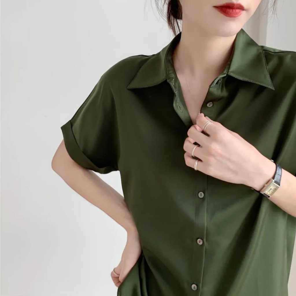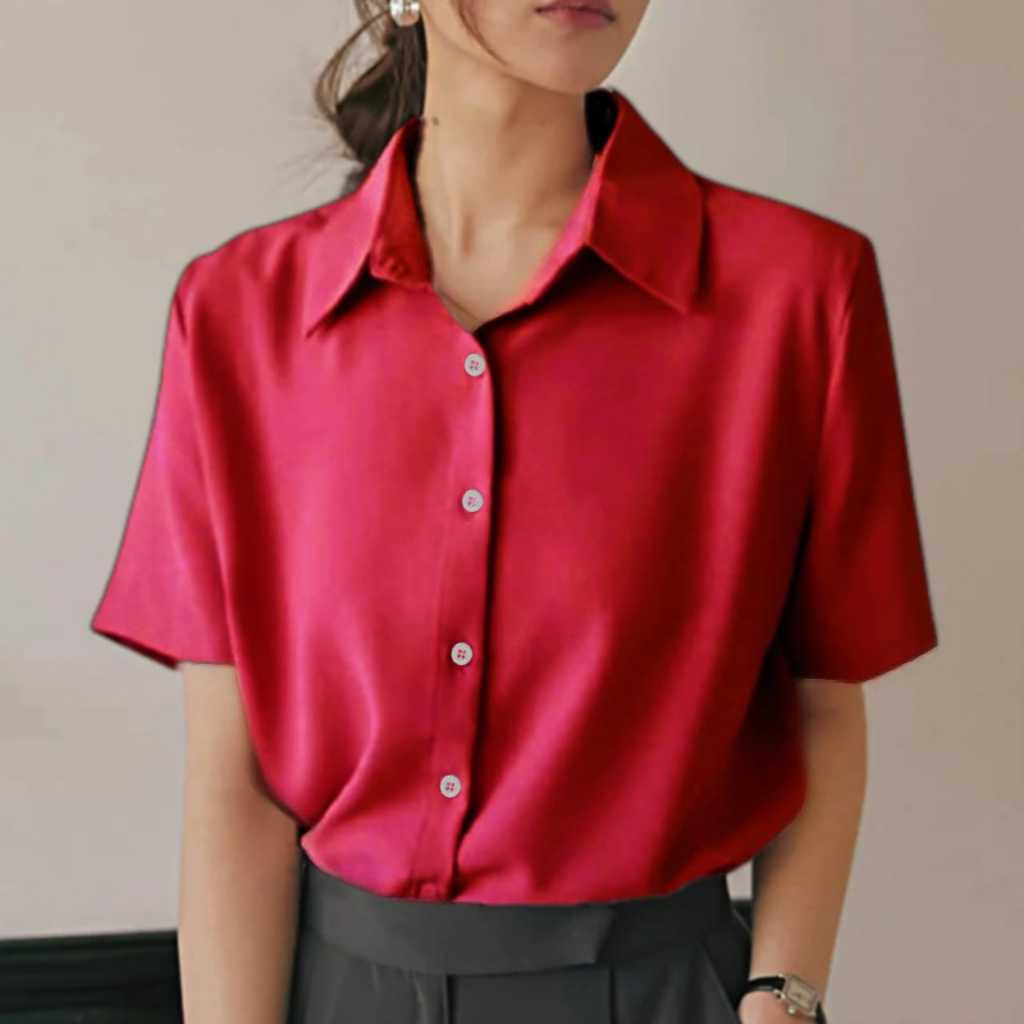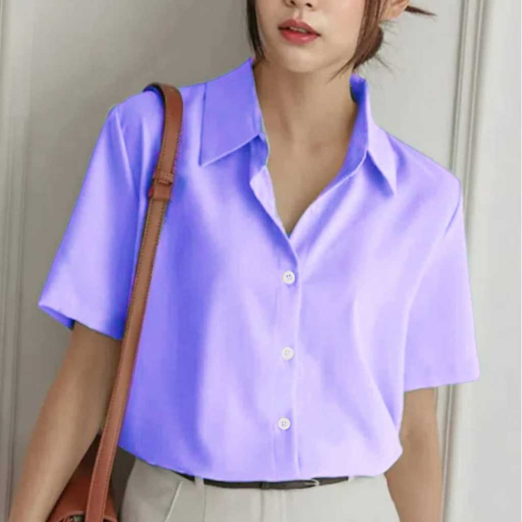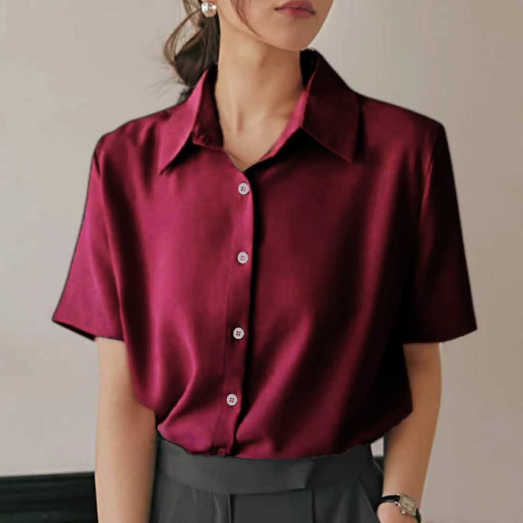 Kemeja Wanita Pendek Putih Hitam Atasan Kerja Kasual