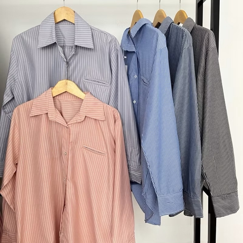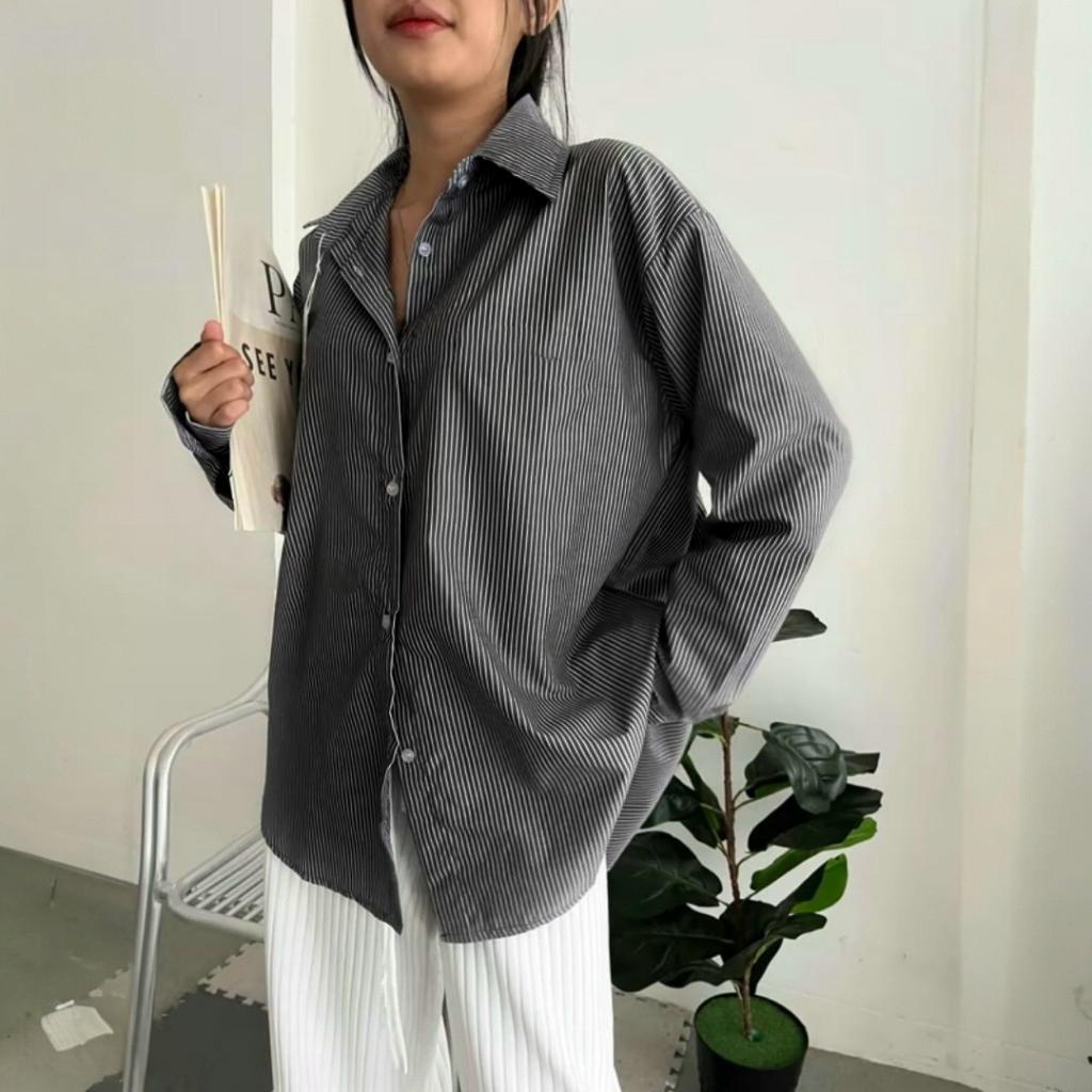 Kemeja Salur Wanita Korean Stripe DEEPA Katun