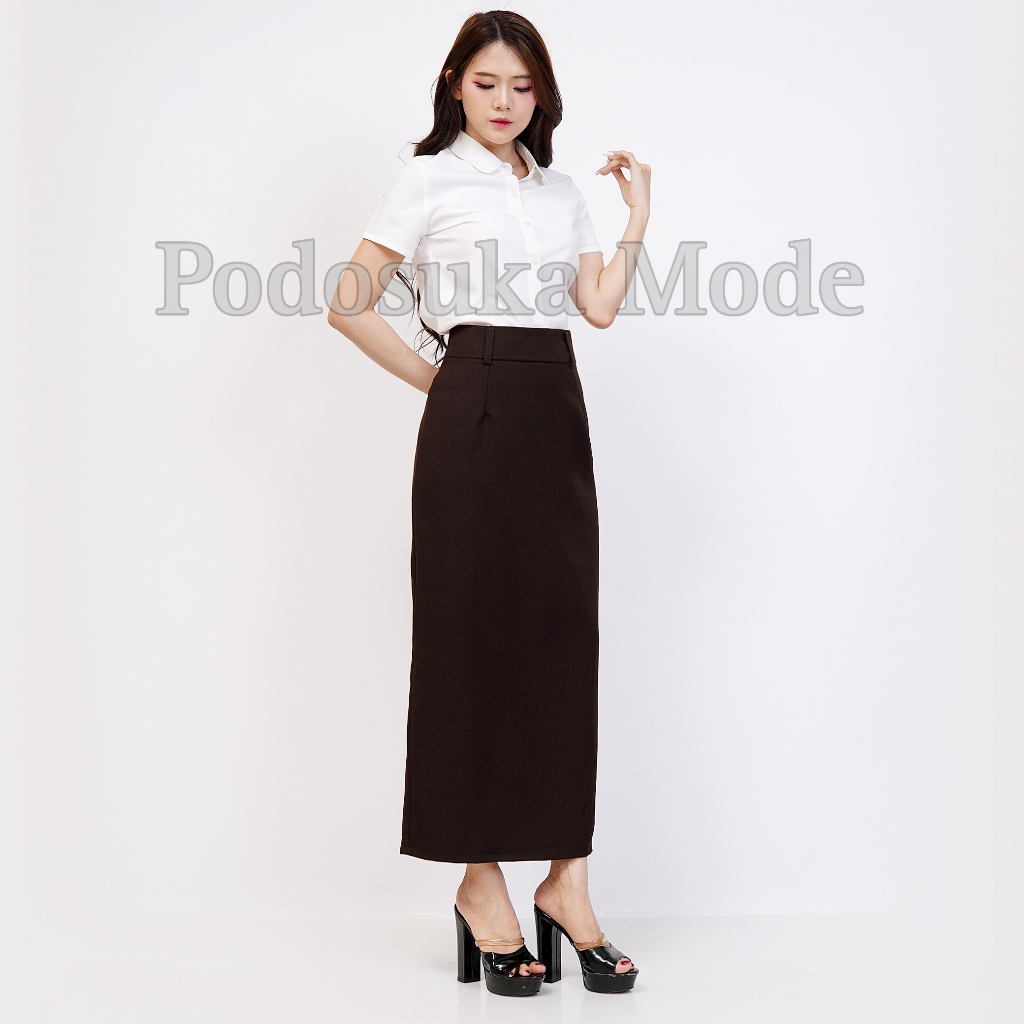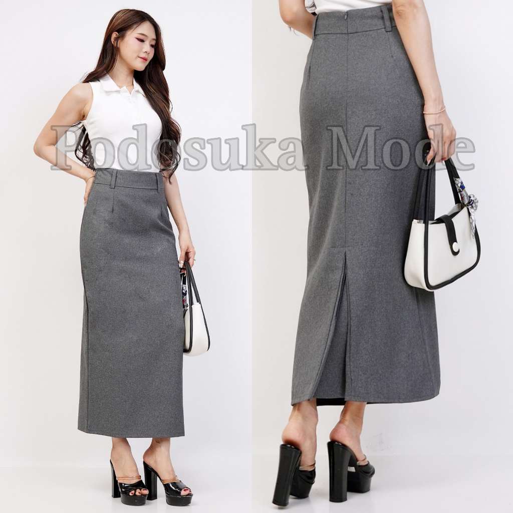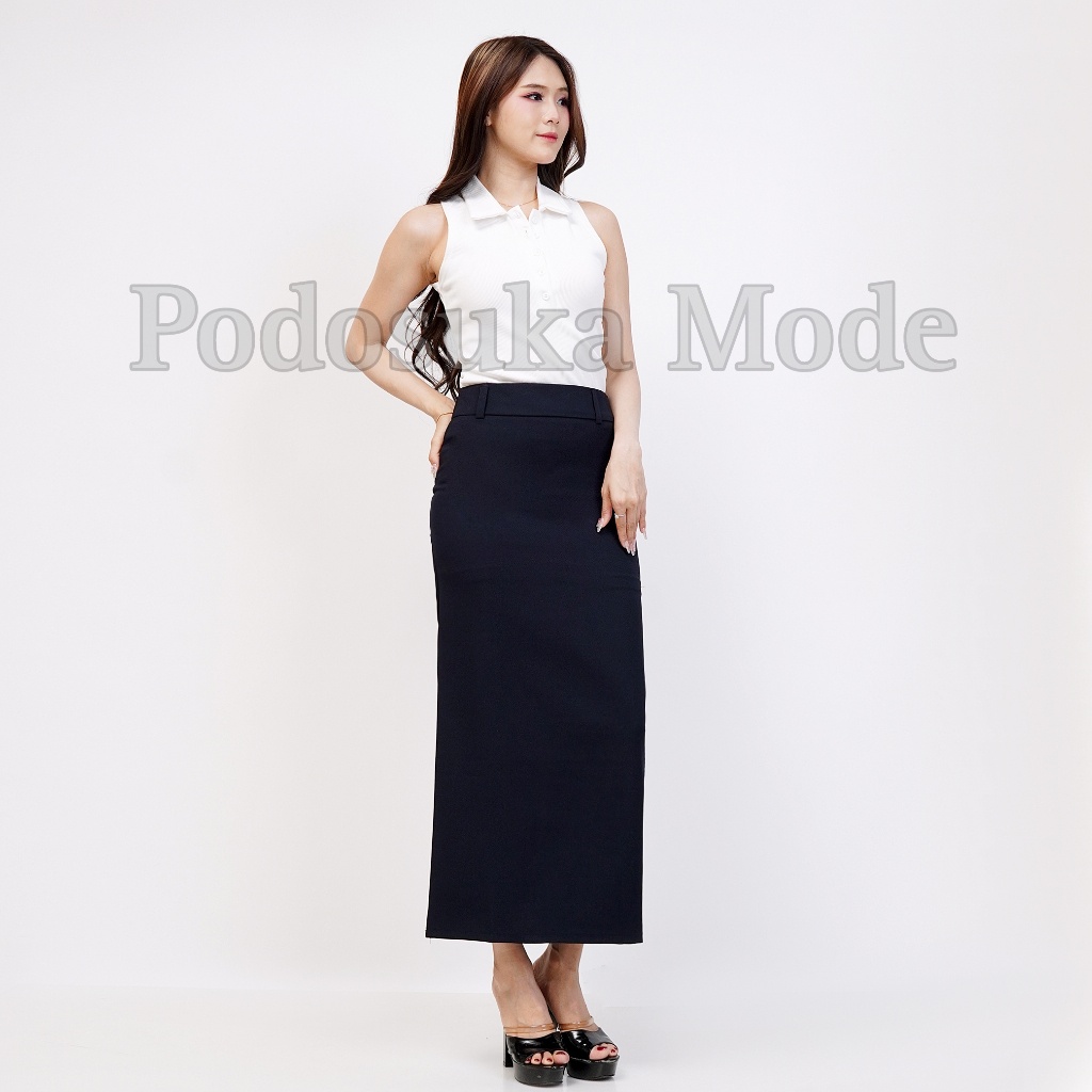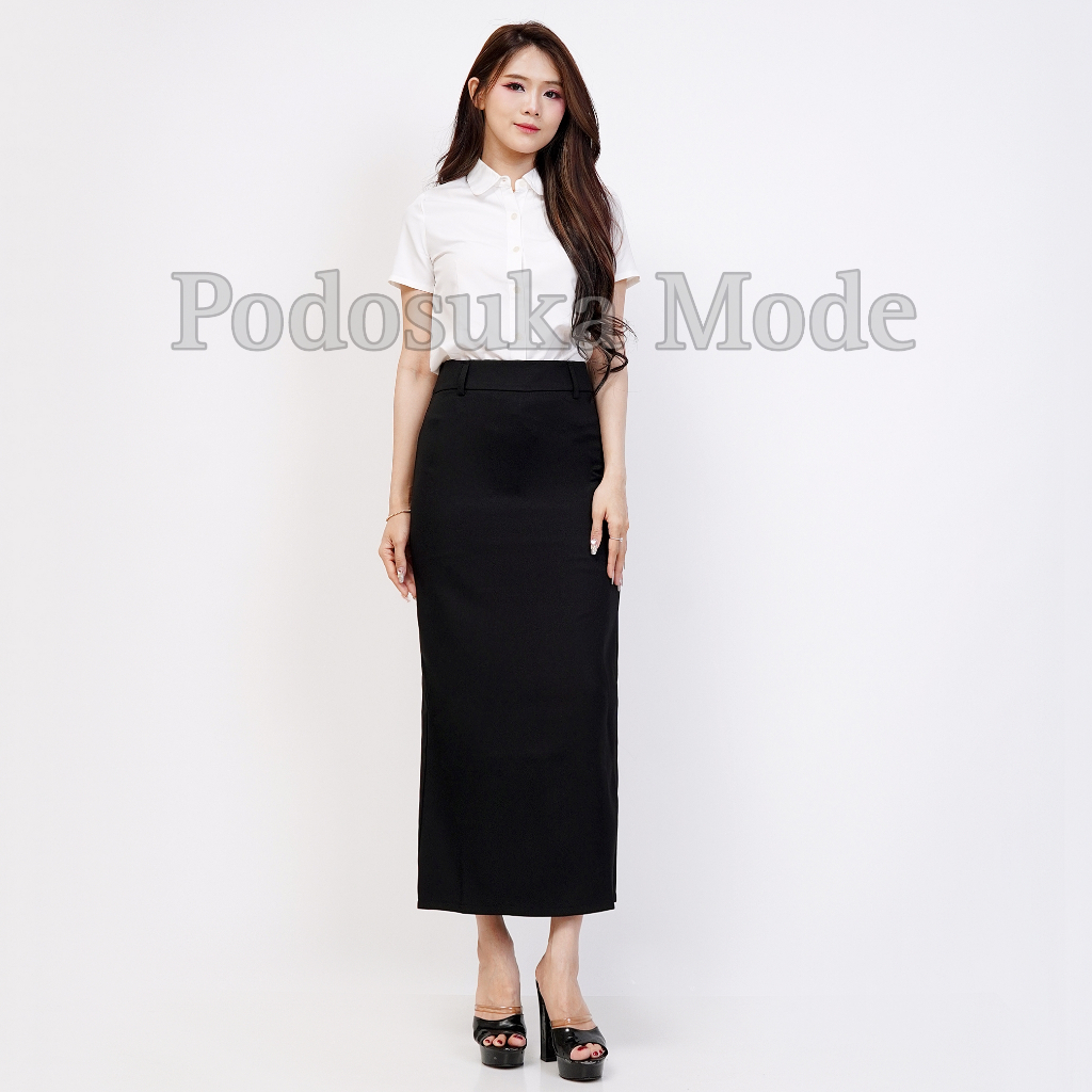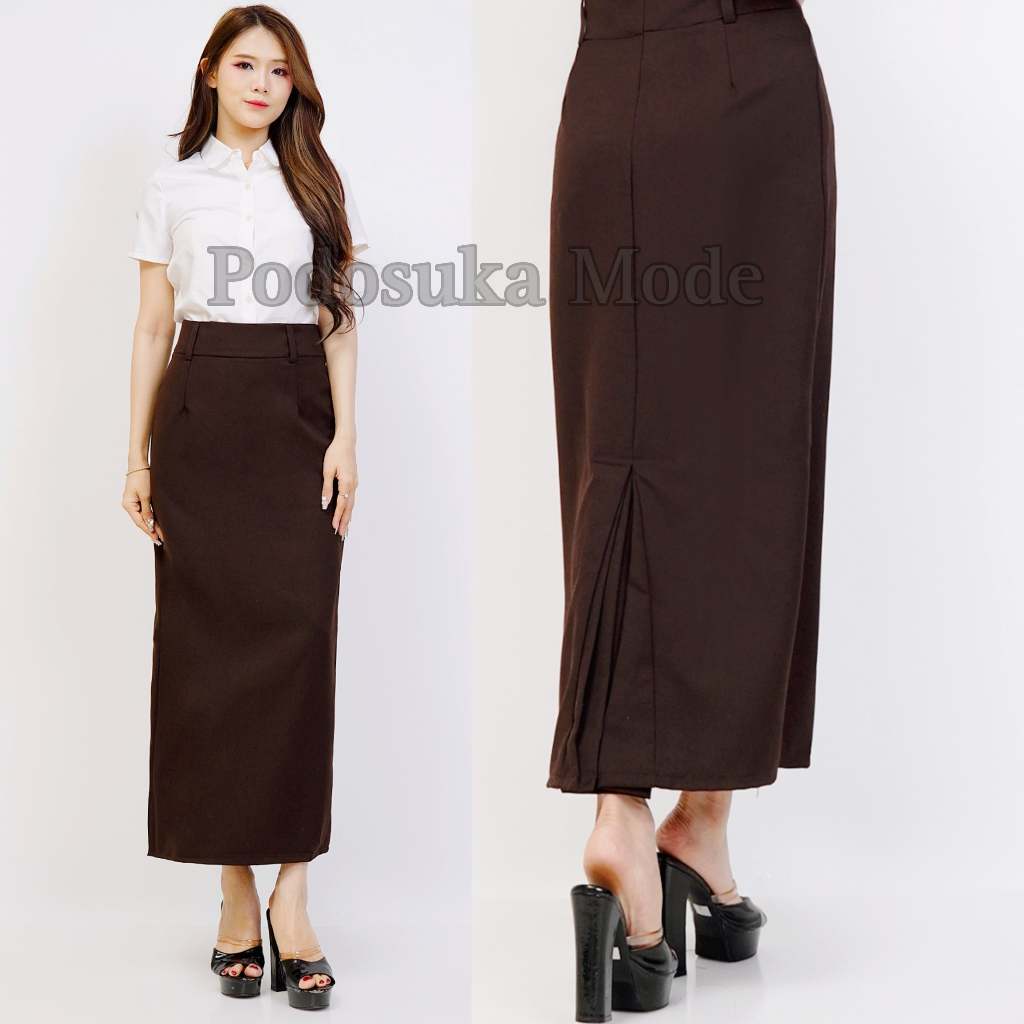 Rok Kerja Kantor Hitam Panjang Span Rempel Belakang Rok Wanita Kerja