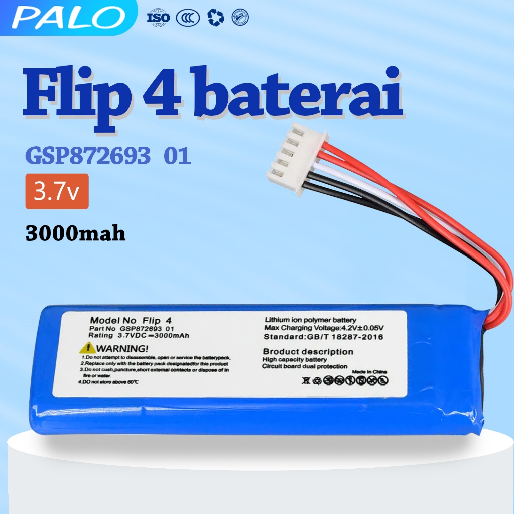 PALO 2021 New GSP872693 01 Rechargeable Battery Pack 3.7V 3000mAh/11.1Wh baterai for JBL Speaker Flip 4, Flip 4 Special