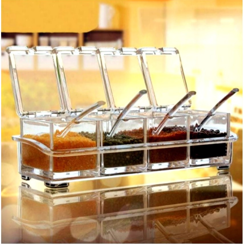 TEMPAT BUMBU DAPUR SET KOTAK WADAH ANEKA 4 PCS TRANSPARAN TB002