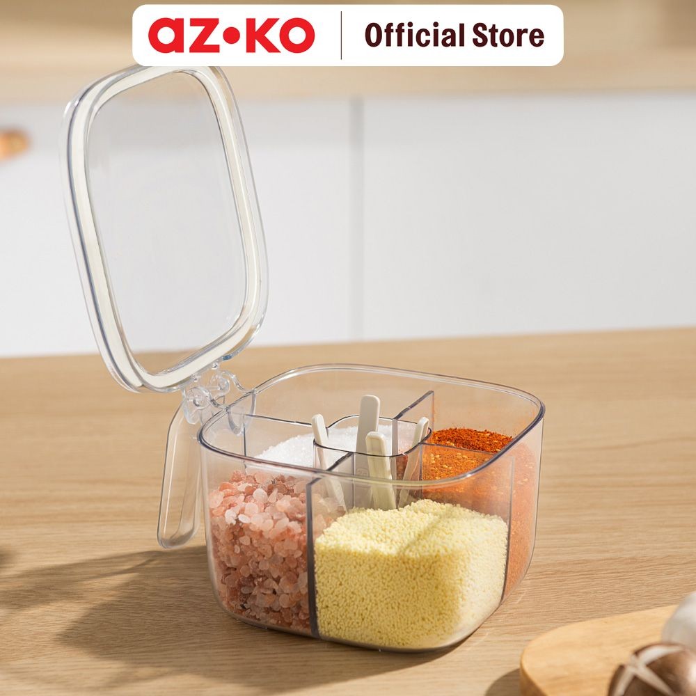 AZKO Kris Tempat Bumbu Dapur Dengan Sekat Transparan Spice Jar Tempat Penyimpanan Bumbu Perlengkapan Dapur Seasoning Jar