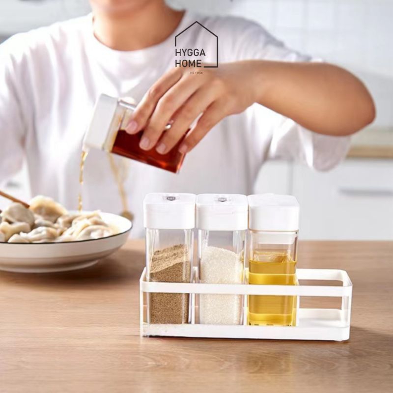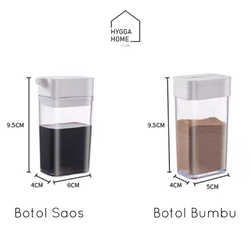 Hygga Home MARIKO Plastic Bottle Set Tempat Bumbu Dapur Set 4pc Kotak Bumbu Bubuk Garam Merica Saos Kecap Seasoning Box