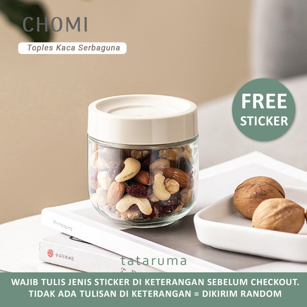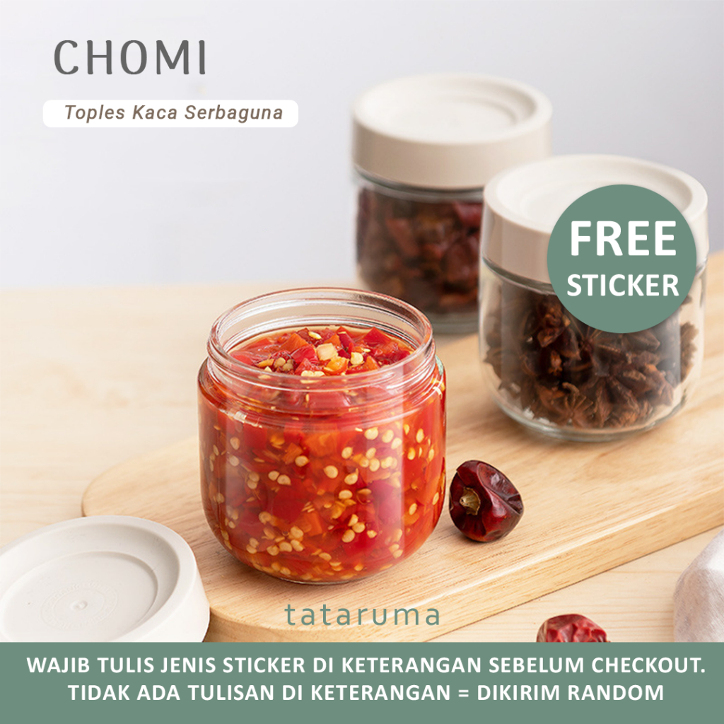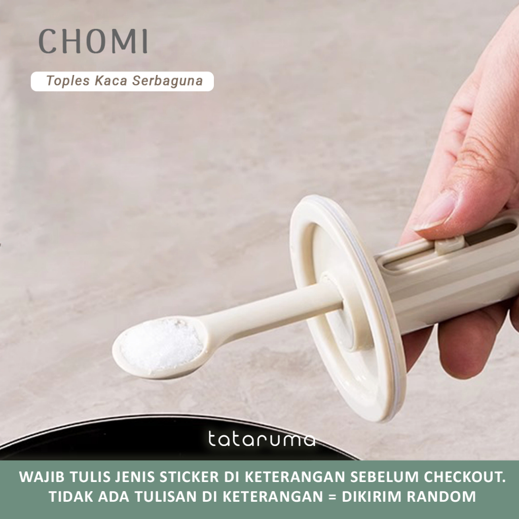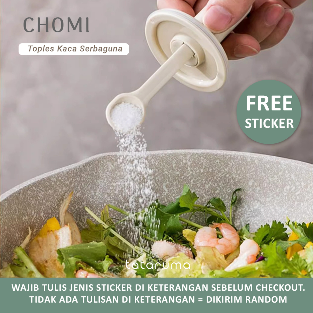 TATARUMA Chomi - Toples Tempat Wadah Bumbu Jar Kaca dengan Sendok FREE STICKER