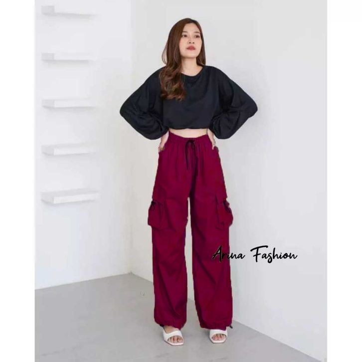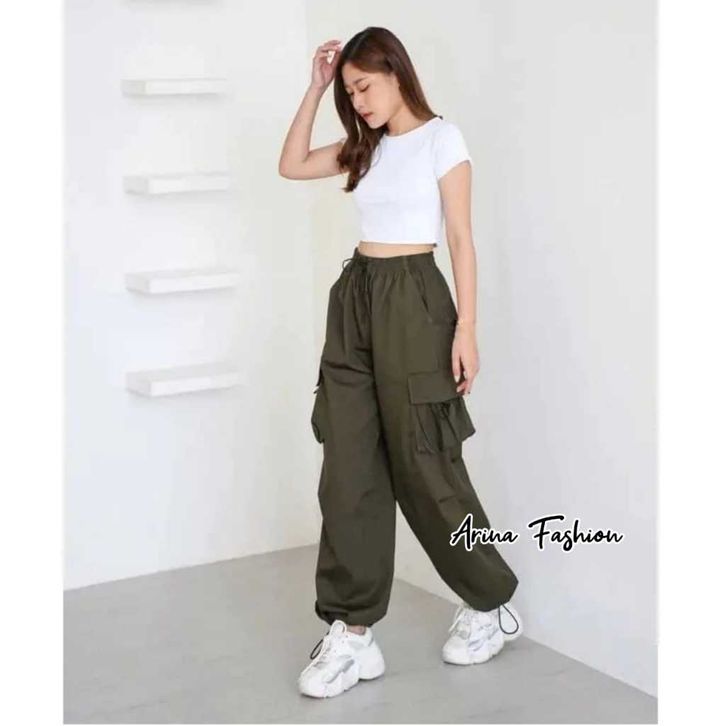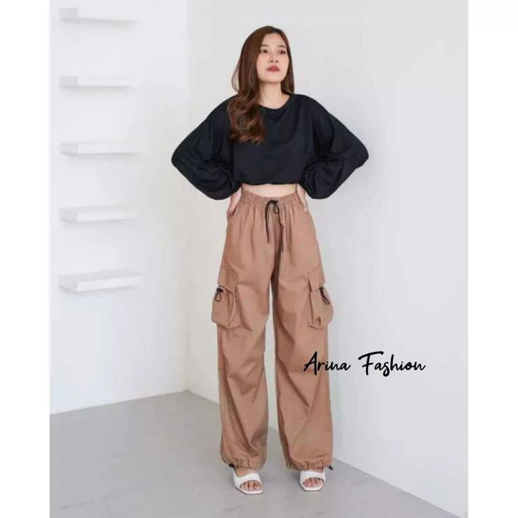 Celana Wanita Kekinian Terbaru Cargo Pants Highwaist Loose Pants Korean Style Jumbo